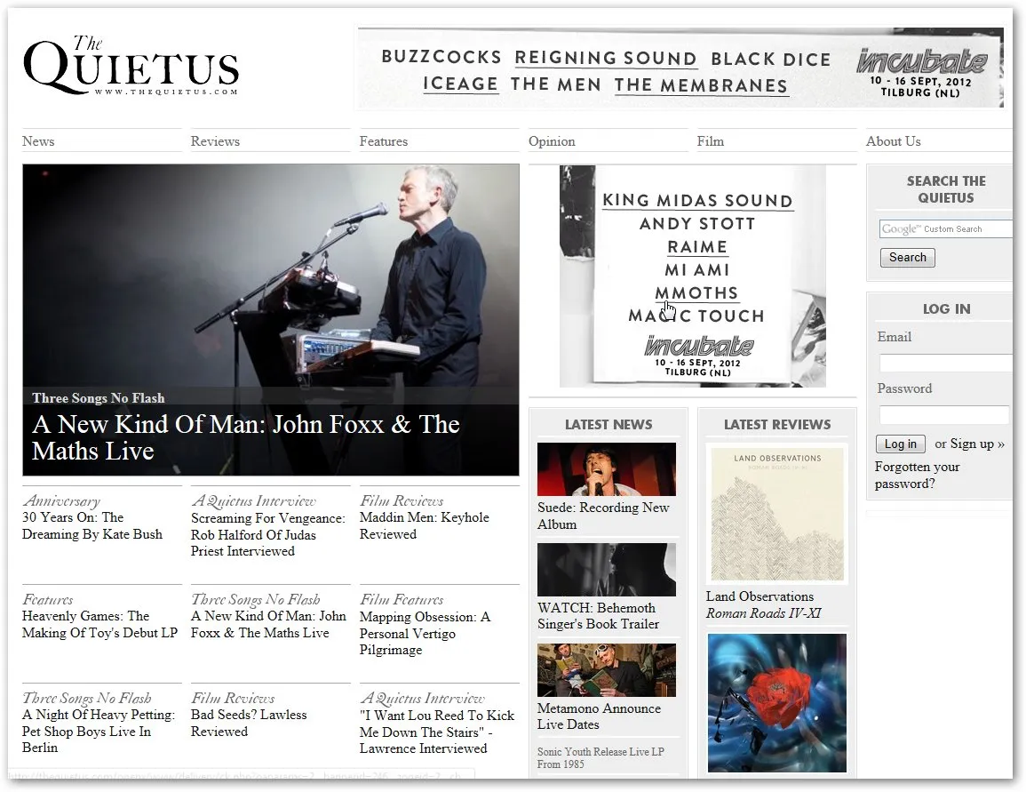 Heel anders werkt The Quietus, een Britse site die sinds 2008 bestaat en zich richt op volwassen muziekliefhebbers die op zoek zijn naar verdieping. De stukken op de site zijn opvallend lang: niet zelden 1000 woorden over een totaal onbekende band. Redacteur John Doran over zijn filosofie: “Als iedereen zich richt op jongeren, kiezen wij voor een net iets ouder publiek. Als iedereen over chillwave schrijft, moeten wij iets anders uitgebreid coveren. Er is interessante muziek in overvloed. Het was pure eigenwijsheid: ik wilde het ongelijk van die mensen bewijzen. En dat is gelukt.”