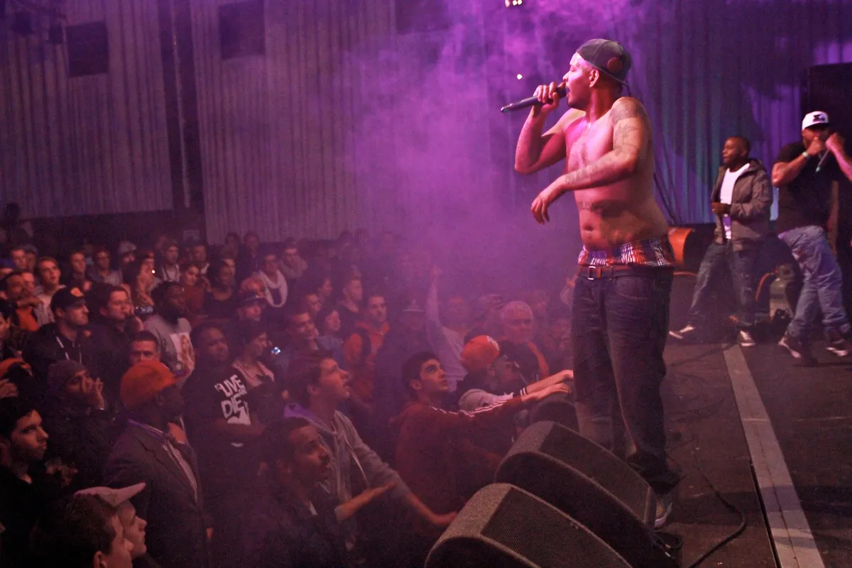 Papierwerk staat op de dag van release op nummer 1 in iTunes. Hef Bundy is trots en ontroerd. Bij de plaatselijke Velvet hadden ze maar zes exemplaren van Papierwerk ingekocht - want koopt dat publiek nog cd's? - maar die waren in een vloek en een zucht op. Even los van de vraag wat dat nu precies waard is - nummer 1 in iTunes - betekent het veel voor de rapper. Niet zo gek, aangezien hij het 1. voor de money en 2. voor de bitches doet. Get Money luidt het devies, liever goedschiks dan kwaadschiks. De set opent met Kluis, een nieuw nummer over een overval, met back-up rappers Killah Keezy (met karakteristieke literfles Heineken) en (broertje) Crooks in bivakmuts. Hij noemt ze vliegtuig, tuig van de richel dat graag high is. Ofzo. Vanavond speelt Hef een thuiswedstrijd, met veel typisch Rotterdams (en veel Antiliaans) publiek. Dat is niet het meest makkelijke publiek, zo blijkt, vooral ook omdat de forse zaal van Corso lang niet vol is, maar Hef weet ze met hard werken stilaan te overtuigen.