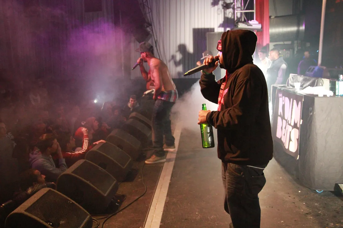 De Nederlandse hiphop wordt momenteel gedomineerd door allerlei cross-overs. Zwart Licht flirt met dubstep, Dio met pop en rock, en het meest populair is de kruisbestuiving met allerlei schreeuwerige vormen van dance van Nouveau Riche/Yellow Claw. Hef Bundy komt nog altijd met echte, ECHTE hiphop. Hij heeft heel wat harde bangers op zijn palmares, die een rare tegenstelling vormen met zijn wat lome, doorblowde flow. Nieuwe tracks als Tot En Met, Niet Huilen Voor Me, Stapel Op en Drink Van Me ("maar dan moet je wel met mij mee"). Hij heeft iets slackerigs, in zijn delivery, in zijn show. Een keer verslikt hij zich zelfs even in een tekst. "Het is nieuwe shit, ik moet het ook leren". De 'slack' zit zelfs in zijn buikje, waar met verse inkt het woord 'Kutleven' op geschreven is. Hef toont het vol trots, halverwege de set.