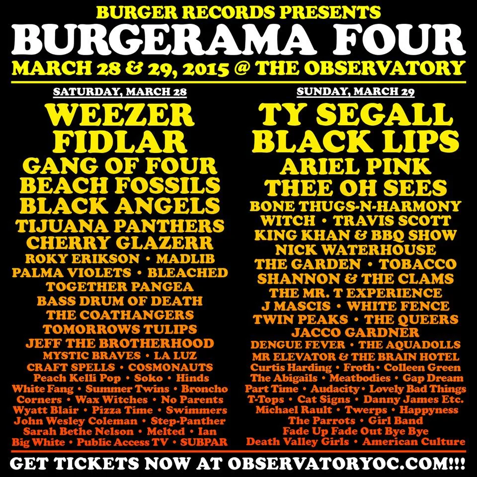 Kompaan Sean Bohrman is net terug uit Tokyo, waar Burger een Pop Up Store startte, en het vizier is nu op SXSW in Austin, Texas gericht. Daarmee zijn voor het cultcassettelabel de drukste maanden van het jaar aangebroken. "Ik hoop dat we het overleven. We hebben elke dag party's. We doen voor de vierde keer Burgermania en voor de eerste maal Wienermania, een groot feest op vrijdag in de Spider House." Vernoemd naar sublabel Wiener Records is Wienerama vooral een trucje om nog meer feesten te kunnen organiseren. "We mochten er niet meer doen. Zaterdag doen we dan weer een grote Burger Mania en zondag rijden we naar San Antonio voor de traditionele Burger Hangover. Dan terug naar LA voor de volgende Burgerama tour en werken aan het volgende event: de Burger Boogaloo in juli in Oakland. Het houdt nooit op, dat is het mooie."
