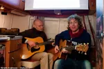 Verderop zit Eric van Beek uit Utrecht in een fauteuil te genieten van de jazz muziek die op de draaitafel ligt. “Ik draai plaatjes voor Mechanical Musical Marvels bij wijze van muzikale omlijsting. Dit is mijn eerste keer Crossing Border. Na DJ Moto die je nu hoort ben ik straks weer aan de beurt.” DJ Moto draait vele vormen van jazz, van de jaren zestig tot in de 21e eeuw. “Wij van Mechanical Musical Marvels draaien alleen 78 toeren platen, alles van voor 1938. Dus ook de hot jazz die zich heeft geëvolueerd naar de huidige vormen. Verder draaien we biguine, blues, musette, calypso, bop. Noem maar op: alles wat we mooi vinden, niet stijl gebonden. Gisteren heb ik Kyteman gezien, ook een Utrechtenaar. Eigenlijk wil ik ook graag Paul Buchanan zien, maar als je aan het draaien bent, ben je afhankelijk van pauzemomenten. Als ’t wordt zoals gisteravond, is er niets om me zorgen over te maken. Veel leuke reacties gehad, lekkere sfeer. Echt een feestje.”
