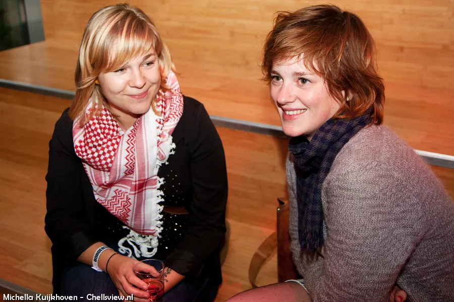 Dieke heeft zich door haar beste vriendin Leonie laten overtuigen om bij The Rumour Said Fire te gaan kijken. Niet alleen de band, maar ook de locatie heeft de dames naar de Paradise zaal in de Koninklijke Schouwburg gelokt. Dieke: “Het is een heel mooi, oud, klein bovenzaaltje hier. Een intiem sfeertje.” Op de vraag of ze nog andere optredens hebben gezien die ze mooi vonden roept het tweetal in koor “Daughter!” Ook Anne Soldaat en Here We Go Magic hebben indruk gemaakt. Voor de tweede Crossing Border avond is de route al gepland. Leonie: '”Stealing Sheep wil ik graag zien. En Spiritualized. First Aid Kit, Polica en dan zijn we er wel weer. En Andrew Bird misschien ook nog!”