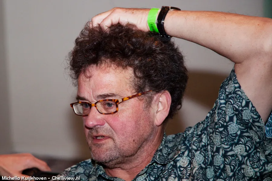 Twee minuten voor hij het podium op moet om geïnterviewd te worden door Jasper Henderson komen we Haags icoon Bart Chabot tegen. Op zijn eigen chaotische manier legt hij uit waarom hij maar weinig van het festival meekrijgt: “Ik word continu aangesproken door bekenden en dat gaat de hele avond door.” Een wandelende attractie wil hij zichzelf echter niet noemen. “Mensen vinden het gewoon leuk om me te zien en ik vind het leuk om hun te zien en zo gaat dat een beetje. Een beetje een reünieachtig karakter heeft het.”