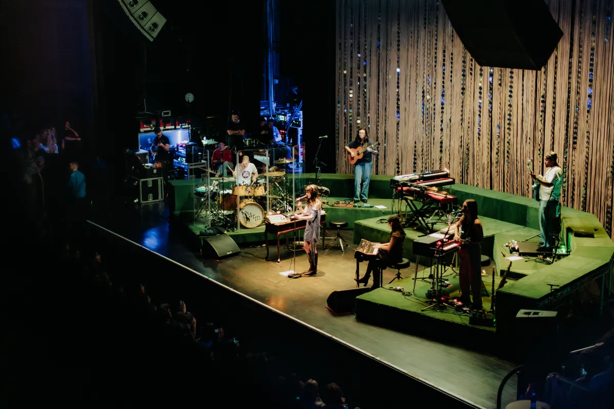 Alsof ze zich klaarmaakt voor een jamsessie in haar woonkamer komt Clairo met haar vijfkoppige band het podium op. Ze gaan rustig zitten, hebben allemaal een glas rode wijn in de hand, proosten met elkaar, kletsen wat. Zonder enig spoor van haast pakken ze de instrumenten op en neemt Clairo plaats achter de microfoon, waar ze opent met ‘Nomad’, die ze bijna fluisterend zingt. Het is het begin van twee avonden in een uitverkochte Ronda-zaal in TivoliVredenburg, terwijl ze makkelijk voor een zaal van groter formaat had kunnen gaan.