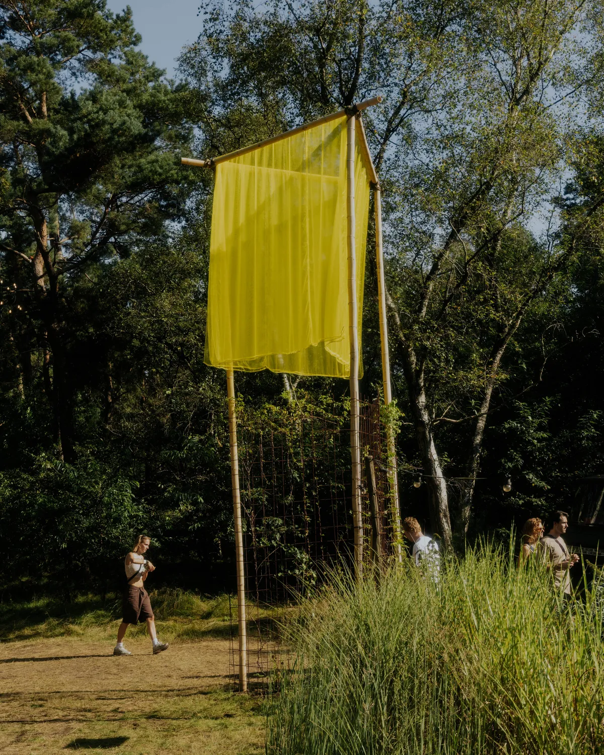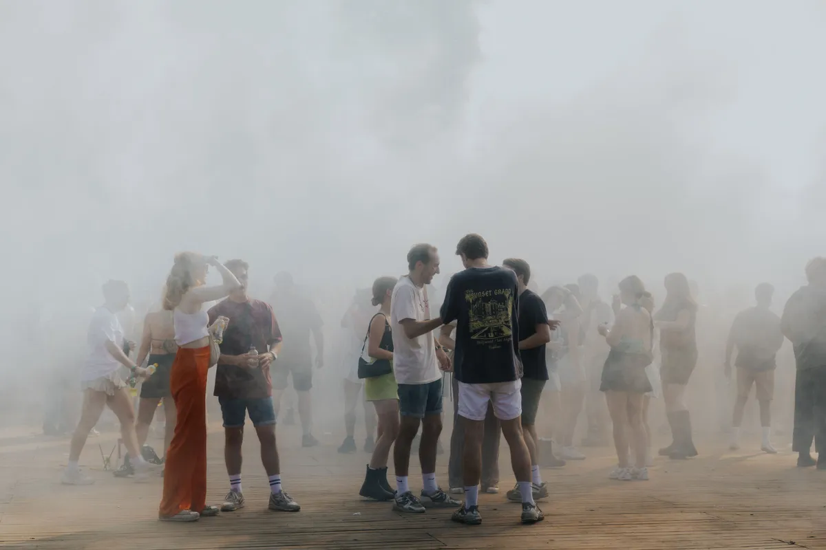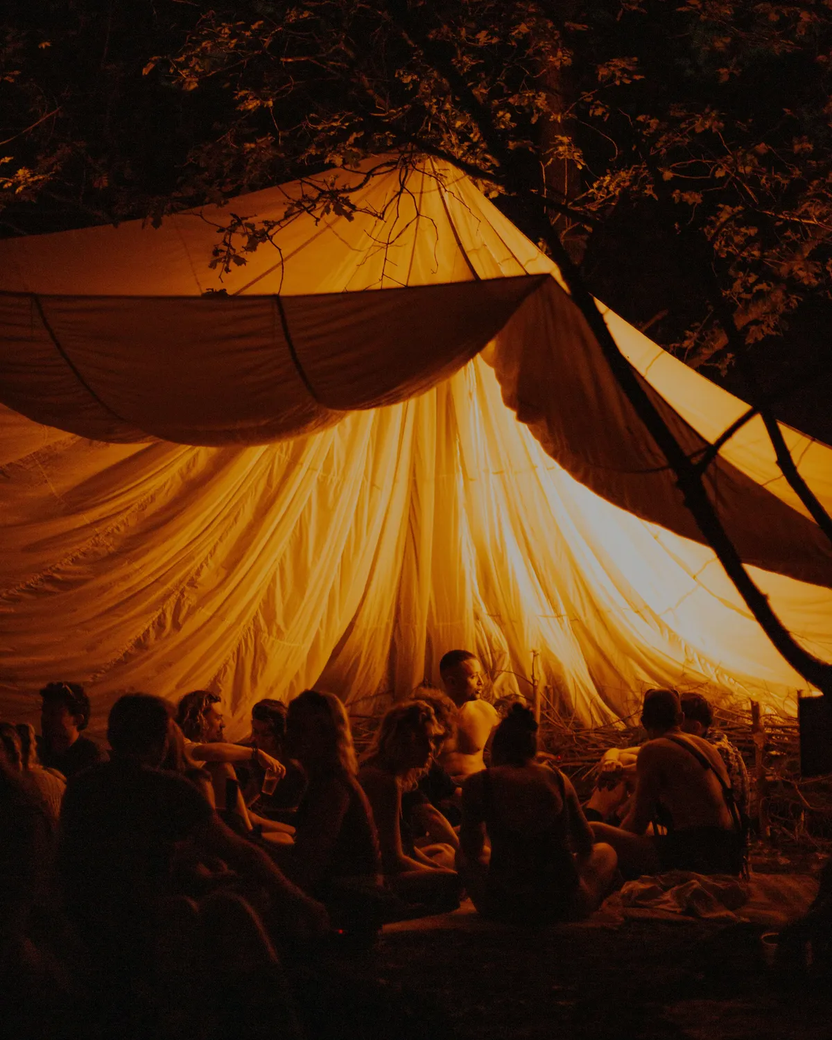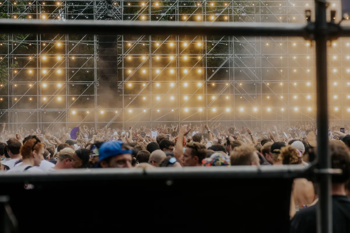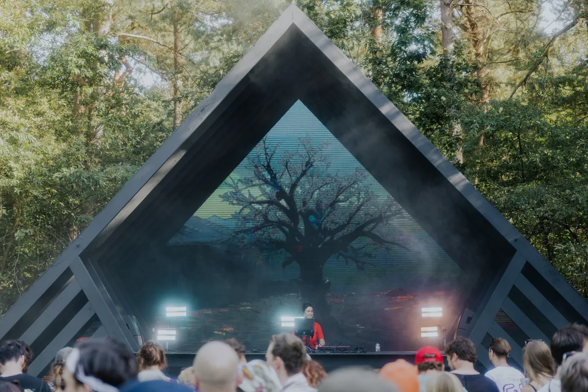 Als je wat meer van de gebaande paden afgaat en dieper het bos induikt, wacht er nog zoveel moois. The Tunnel heeft dit jaar een soort spiegelrail van zeventig meter lang die met lichtjes lijkt te seinen dat je dichterbij moet komen, waar de tovenaarstechno van Voices from the Lake minder vraagt om feesten, en meer de klassieke zij-stap afdwingt. Het bos om The Tunnel heen ruikt af en toe echt enorm naar zweet (het was ook heet hè) en op sommige plekken waar je helemaal niet mag komen, liggen mensen in groepjes een beetje bij te komen.