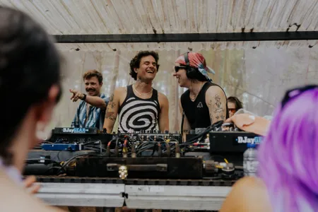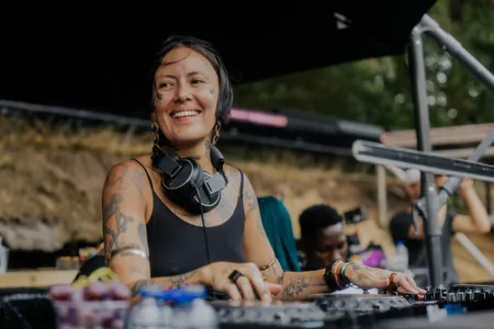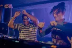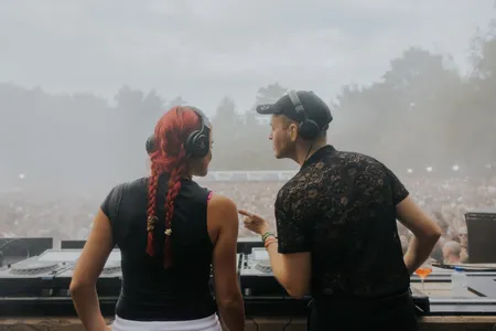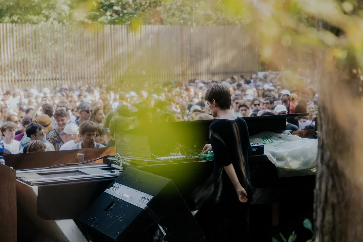 Op welk ander Nederlands dancefestival is het zo vroeg op de dag al zo druk met mensen die ook echt ready zijn om te dansen? Mama Snake en Martinou openen vanaf 12.00 de AURA-stage van label Nous’Klaer Audio, en staan al op de vroege middag voor een compleet vol veld te draaien. Oud munitiedepot? Deze twee zijn het wapen. Ze schieten de ene na de andere emotionele track op dansers af, die in het zonnetje heel vredig hun heupen staan te wiegen. Dat zonnetje is er gewoon speciaal voor deze twee Scandinavische artiesten, die elkaar alleen maar lijken te versterken samen. Soms snap je niet hoe een back-to-back moet gaan werken met twee van zulke uiteenlopende stijlen, maar de melancholische klanken van Martinou en de trippy invloeden van Mama Snake (die vorig jaar de mainstage afsloot met een veeeeeel hardere set) creëren iets magisch op dit moment. Is ambient-techno al een genre? Die grote licht-boxen gevuld met rook (hoe doe je dat joh?!) die vorig jaar in The Tunnel hingen, hebben hier een nieuwe plek gekregen, en ook dat is een schot in de roos. Aan het einde draaien ze een track van The Knife's Olof Dreijer, die op dat moment zelf ook imponeert, even verderop in The Pit.