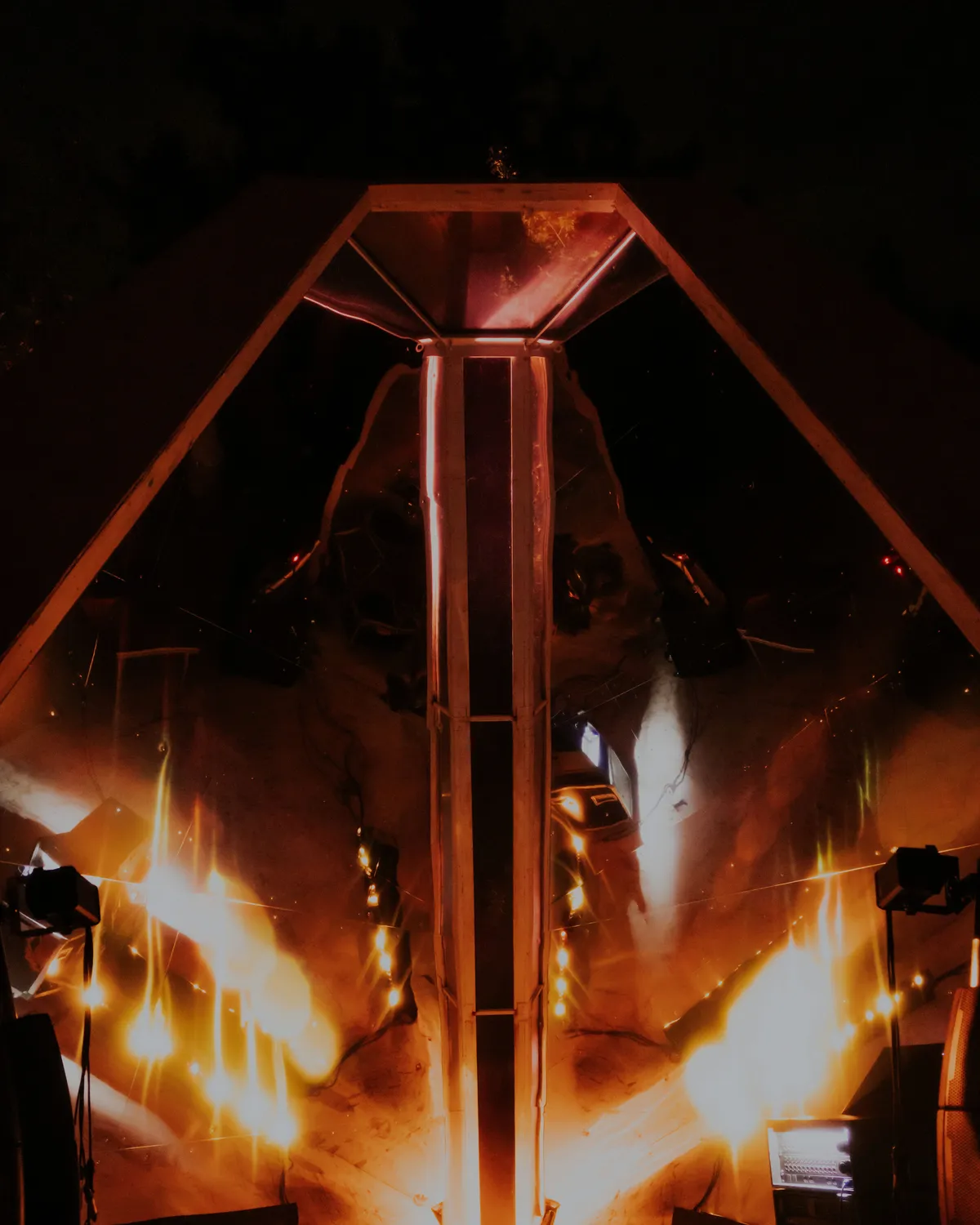 Bij The Chapel zie je dit ook, vooral als het project A# van Alberta Balsam, Bastian Benjamin, French II and Milio, ineens in het midden van dit veld live staat te spelen. De hele dag is The Chapel een podium waar een giga LED-scherm de show steelt, waarop AI-beelden van kathedralen worden geprojecteerd en artiesten voor dansen. Torus ontwierp dit kunstproject nog even last-minute, omdat de oorspronkelijke kunstenaar tien dagen voor het festival afzegde door gezondheidsproblemen.