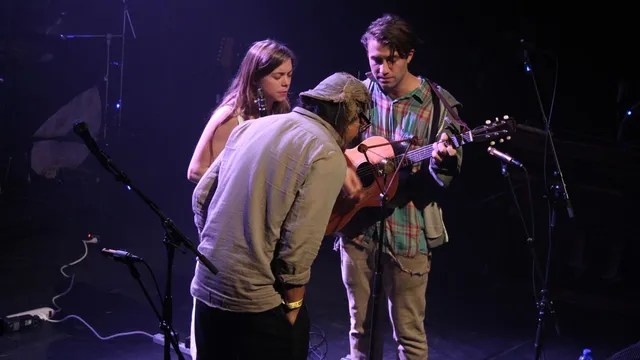 Voordat The Low Anthem opkomt staat het podium al vol instrumenten. Alsof er een dozijn muzikanten de bühne gaan beklimmen. De band is echter slechts met z'n vieren en ieder bandlid speelt dan ook minstens vier instrumenten. Maar voor ze alle registers opentrekken beginnen ze klein, met drie man achter één microfoon, voor het nummer Ghost Woman Blues, eveneens het openingsnummer van hun nieuwe plaat.