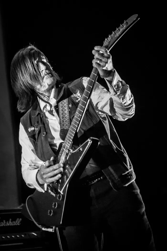 Dan is het een redelijke overgang naar Earth. De meest legendarische band van de line-up is ook de meest buitenissige. De nagenoeg instrumentale drone- en doom metalpionier is met afstand de zwaarste pijler van deze editie. Vergeleken met het geestverwante Sunn O))) volgen de drones van spil Dylan Carlson elkaar veel sneller op. Niettemin is de opener een loodzwaar kwartier waarin Carlson met geheven gitaar een serie drones afvuurt, waarop de drumster en bassist in slowmotion lijken te spelen. Even fascinerend om te zien is hoe de sfeer 360 graden gedraaid lijkt, vloeistofdia's en warme retrosferen hebben plaatsgemaakt voor animaties van ruige bergruggen en duisternis. Carlson draagt tweede nummer Even Hell Has Its Heroes op aan Tos Nieuwenhuizen, de Nederlandse gitarist en 'amp wizard' die met zijn amps het geluid van Sunn (en dus ook Earth) mogelijk maakte. Als in een seance komen epische tracks als The Bees Made Honey In The Lion's Skull en klassieker High Command voorbij. Na een uur is het publiek behoorlijk uitgedund, maar koesteren we deze gewaagde boeking.