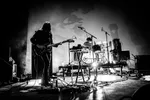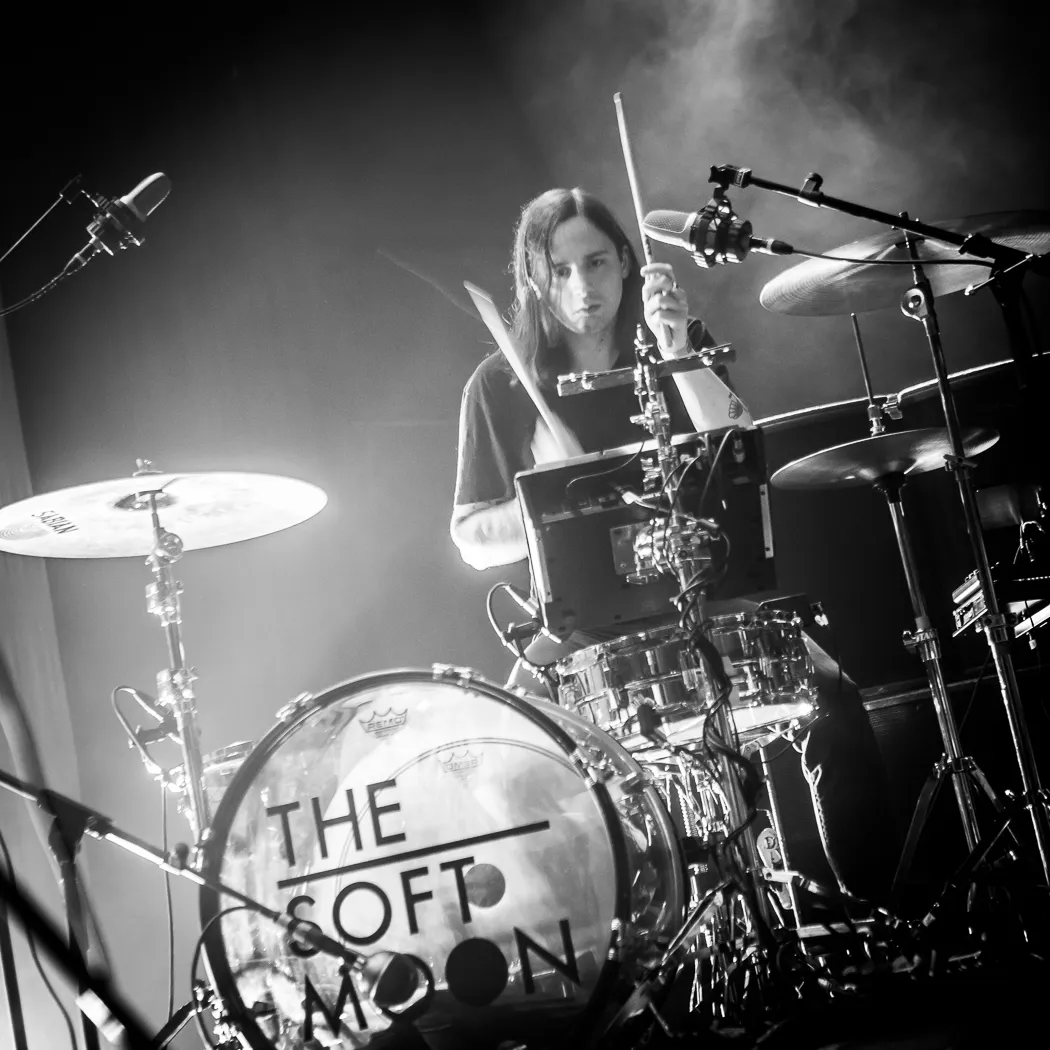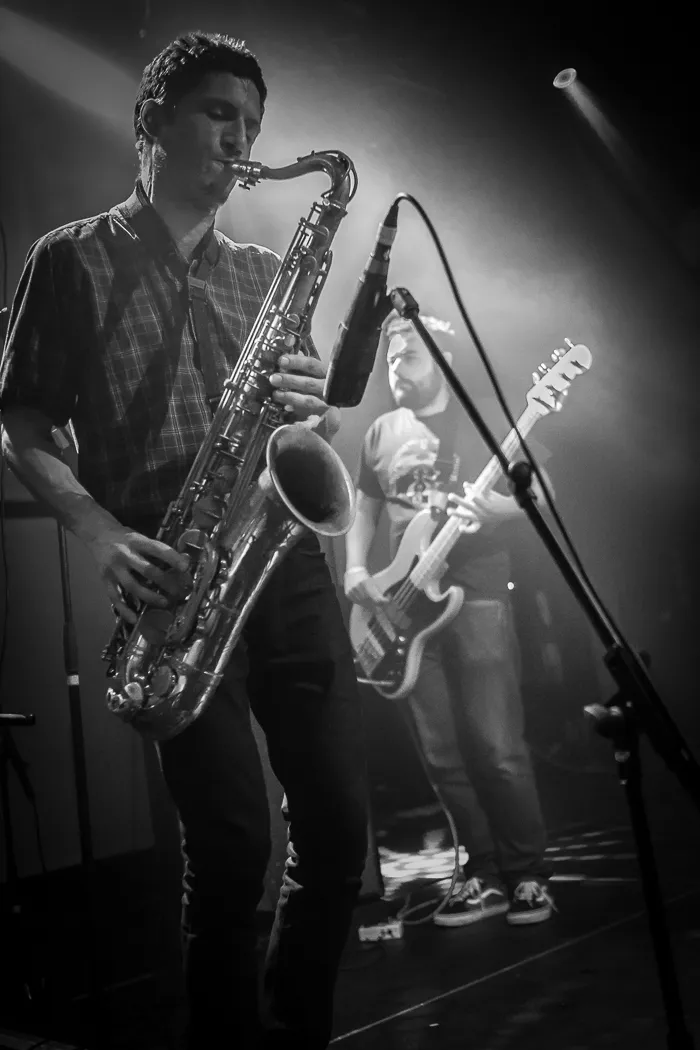 Het Portugese Black Bombaim soleert en jamt vervolgens de hele kleine zaal omver. Zonder zang of frontman zelfs, maar met trompet en sax. Dat werkt goed; we zien een geconcentreerde, soms virtuoze band in weer een compleet andere sfeer. De zaal lijkt in een diepe trance te verkeren. De desolate blues is wel redelijk lastig te behappen als je van strobo-industrial inferno The Soft Moon komt.