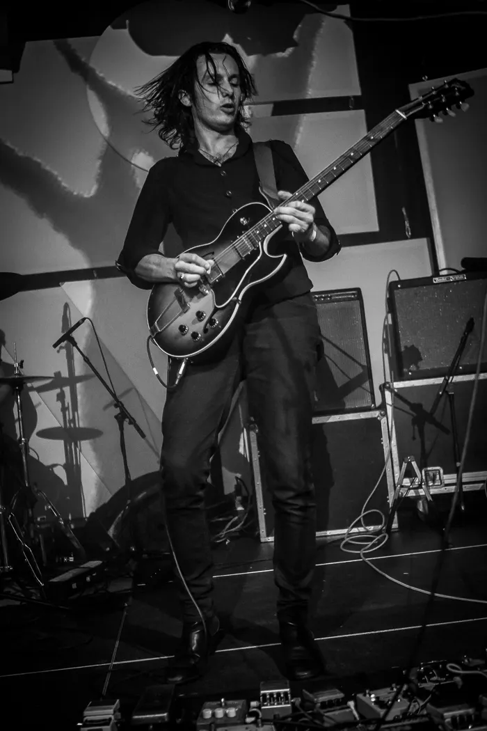 Het Londense trio Desert Mountain Tribe zit op een vergelijkbaar spoor, maar meer bluesy en met een vette Liam Gallagher Britrock swagger. In de volgende dertig minuten spelen frontman Jonty Balls en de ritmebroers Philipp en Felix Jahn ons omver met behoorlijk epische psychblues. Ze eindigen met een broeierige Madrugada-achtige track. Nice. Desert Mountain Tribe was de eerste act die net wat te groot is voor de kleinere Observatory.