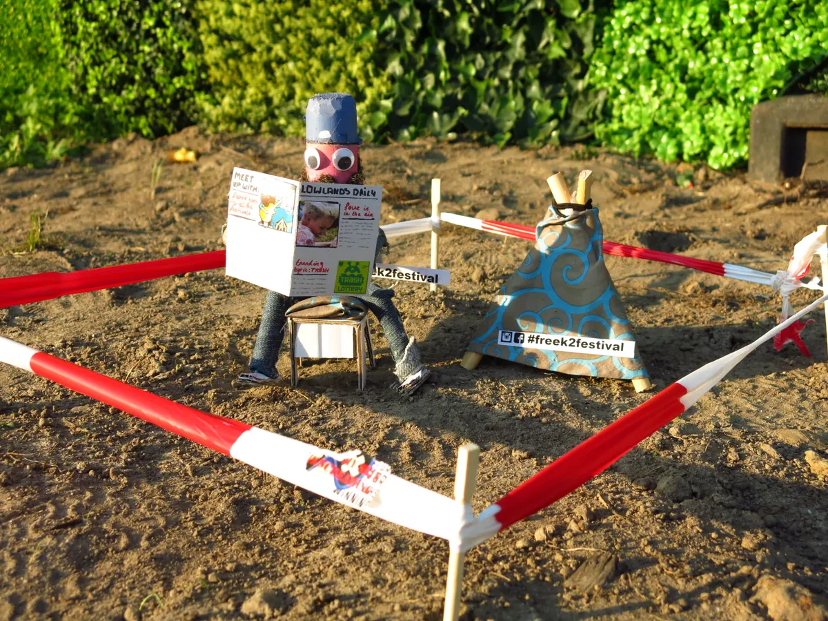 Struinend over het festivalterrein kom je de meest onverwachte dingen tegen. Enorme sculpturen, vrienden die onverwacht naar de klote zijn of juist een keer niet, en een heuse mini-Lowlands-camping. Echt waar, wie goed heeft opgelet zag tussen het veld van de Bravo en die van de Heineken en Charlie ergens een klein afgezet miniatuur-tentje staan in de berm. Inclusief campingstoel en Lowlands Daily. Geen idee wie er verantwoordelijk voor was, maar we zagen heel terecht de nodige mensen zich er aan vergapen. Meer van dit soort creativiteit van bezoekers (toch?) graag!