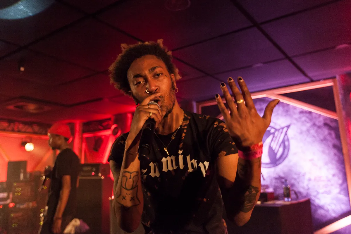 De punk-explosie van SMIB in de Oosterpoort was ons absolute hoogtepunt van Noorderslag. Het collectief rondom Ray Fuego, GRGY, GHQST en Tads Thots gaf een rauwe hiphopshow in de Bovenzaal. Zijn er bij hun shows normaliter tientallen kids met SMIB-shirtjes in de zaal, nu waren het er slechts een paar. ‘Toch meer dan ik had verwacht!’, zegt GRGY. ‘Het was niet zo’n gekkenhuis als later die nacht, toen we in de Gym speelden, maar het was heel gezellig: de voorste rijen gingen helemaal los.’