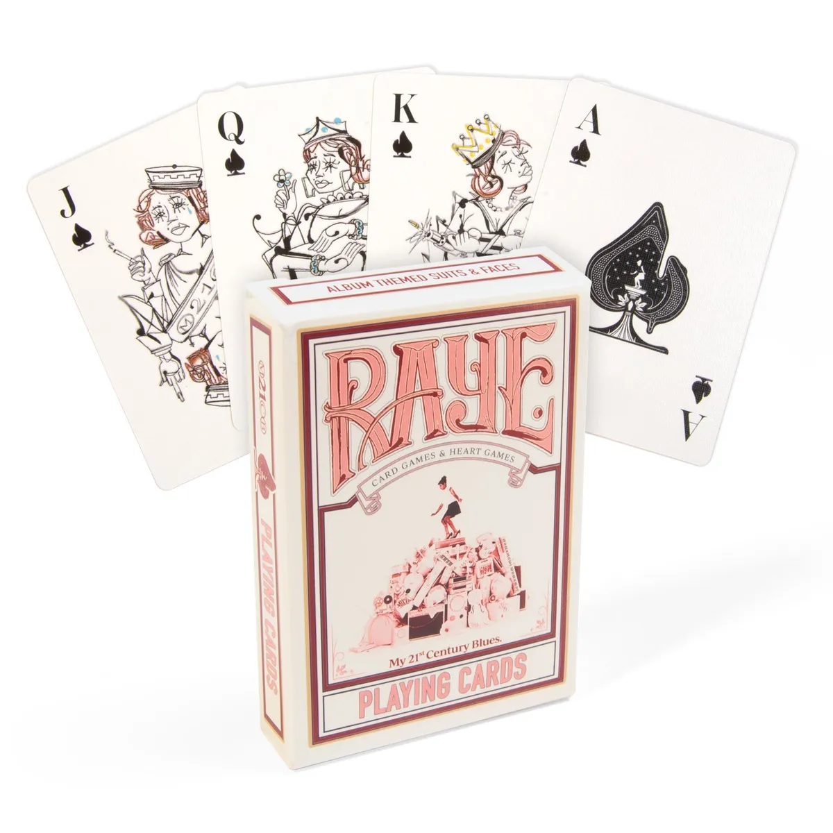 Wat is er nou gezelliger dan een spelletje doen na het kerstdiner met de geur van de gourmet nog in de kleren? Nou? Vrij weinig, en daarom zijn RAYE's speelkaarten een ideaal cadeau voor de hele familie of vriendengroep. De Britse singer-songwriter maakte zich kort geleden los uit de ketens van een groot label dat haar uitbuitte en niet de kans gaf om haar potentie waar te maken, bracht dit jaar op eigen houtje (!) een prachtig debuutalbum uit en veroverde de harten van velen in zowel festivaltenten als popzalen met haar gouden strot en ENORME charisma. Een superster in wording!