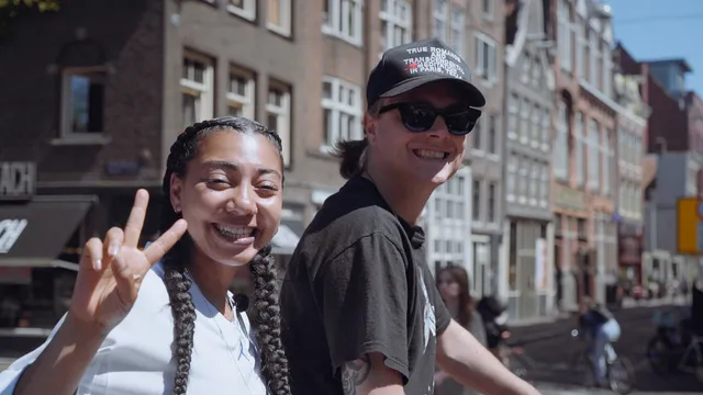 Roziena Salihu gaat met de alleskunner op de fiets door Amsterdam