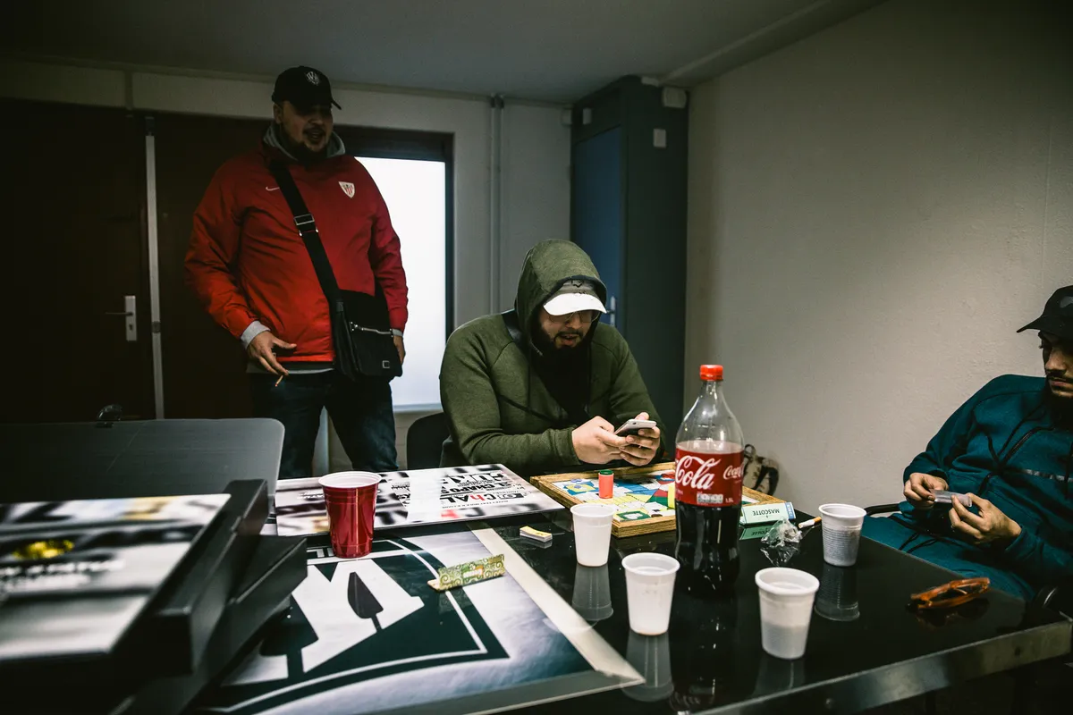 We zijn op het kantoor van Wilde Westen in Den Haag. We hangen met z’n allen aan tafel, er staan flessen cola en sinas en kleurplaten met stiften voor een piepjong meisje dat rondloopt. Manager Mo zit in de hoek een voetbalgame te spelen met een vriend – volgens mij heeft hij niet eens door dat ik binnen ben gelopen.