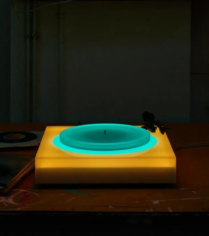De koning van de ambient muziek Brian Eno komt met wel een heel bijzonder kerstcadeautje op de proppen zetten: een lichtgevende platenspeler. Naast muziek maken is de Brit ook een visual artist. Ook wel bekend voor zijn prachtige kaleidoskopische light boxes. In diezelfde trant maakte hij nu deze LED-verlichte platenspeler, die van kleur veranderd als je er een ander plaatje oplegt. Echt een prachtig ding, maar wees er snel bij want er zijn er maar een stuk of vijftig.