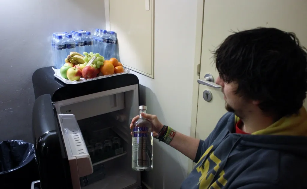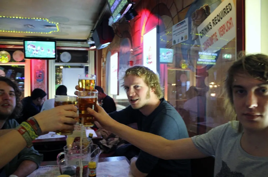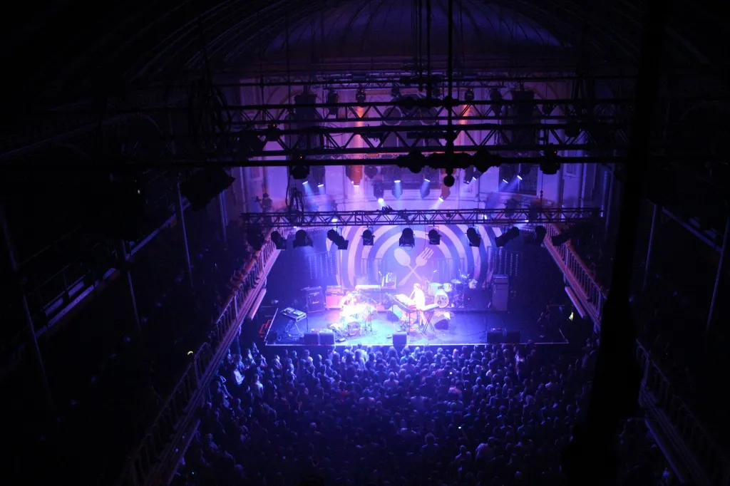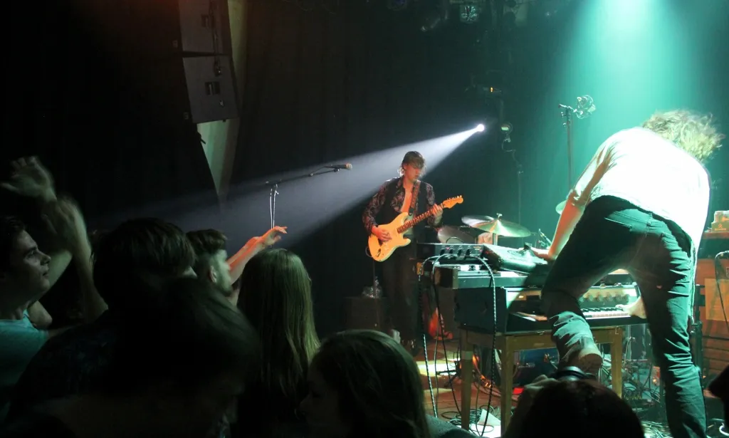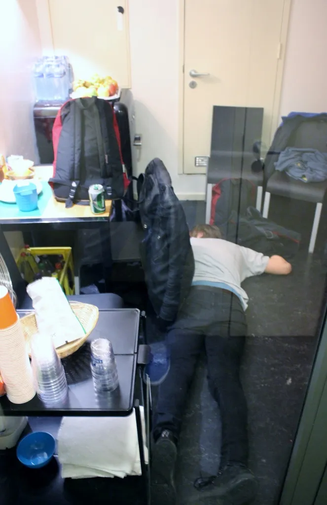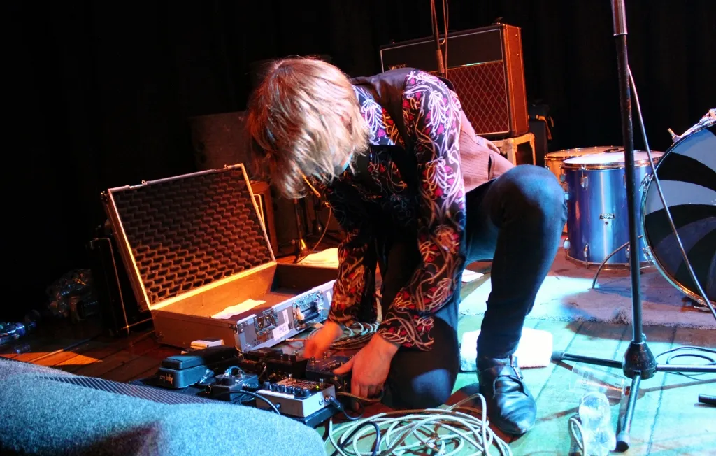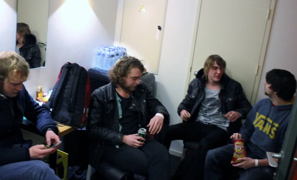 Nadat de inhoud van het busje via de lift naar twee etages hoger verhuisd is, neemt de stagemanager weer afscheid. "Ok, ik zie jullie bij de change-over om 21.00 uur. Sugar Boy gaat dan afbouwen, jullie opbouwen, dan doen we een line-check en 22.00 uur spelen. Hoe lang is jullie set? Gewoon een uur spelen toch?" Het antwoord is bevestigend en het plan duidelijk. Tijd om aan voedsel te gaan denken.