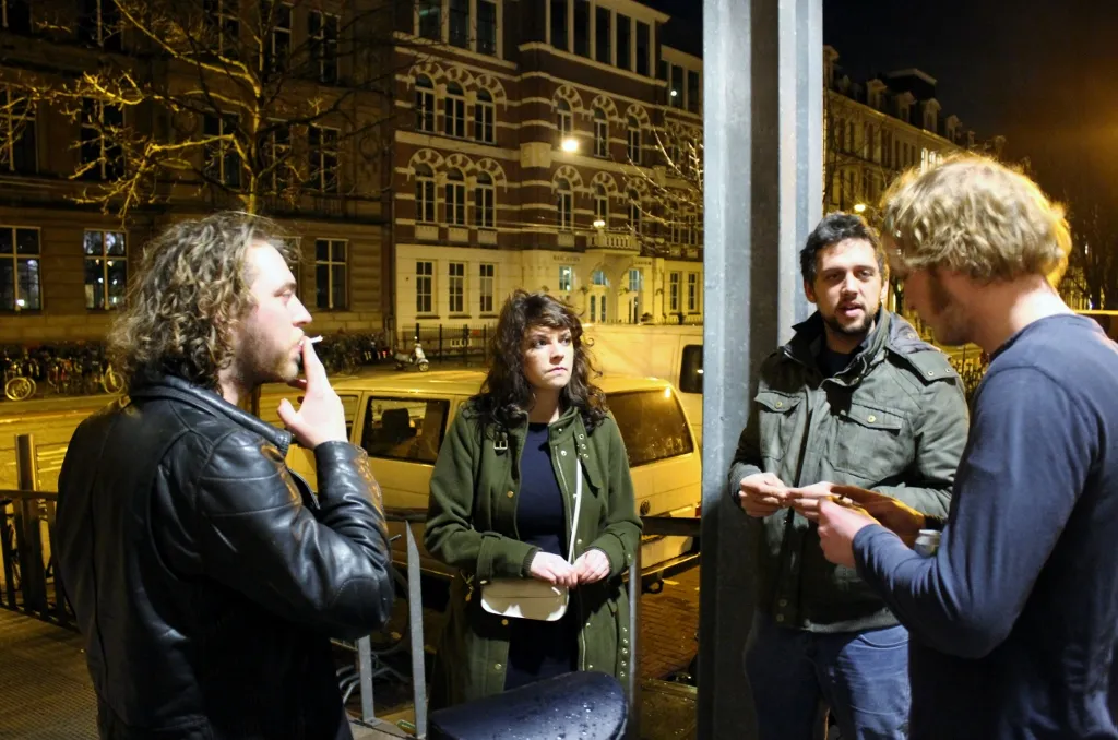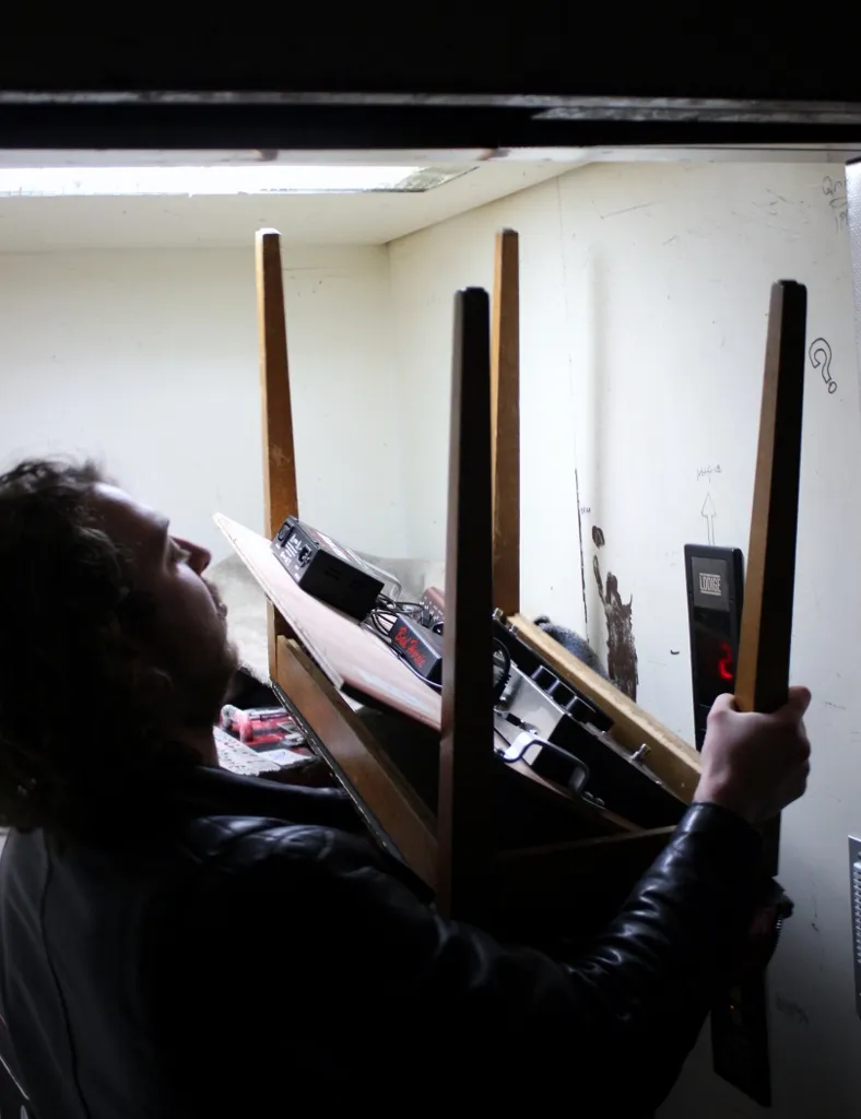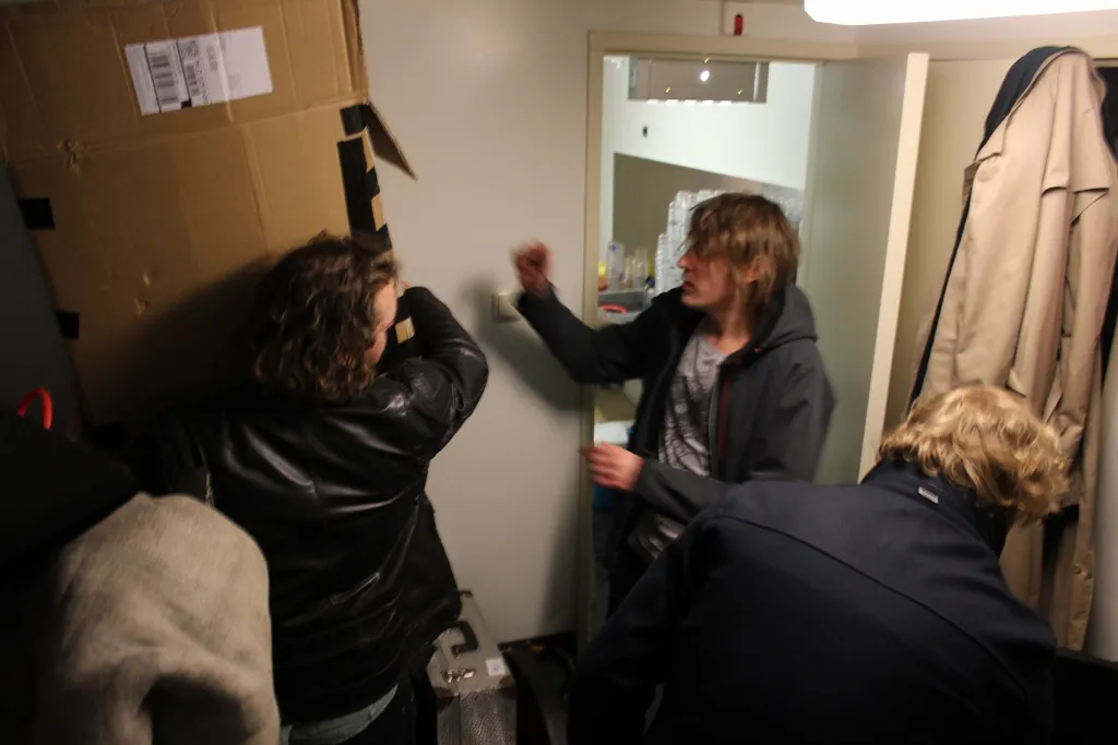 Het is een drukte van jewelste met personeel binnen en buiten Paradiso, maar als band zorg je wel voor het vervoer van je eigen spullen. Drummer Bob: "Er zijn altijd veel handjes, maar dat is meer productie. Geen kritiek hoor, dit is wel hét poppodium van Nederland."