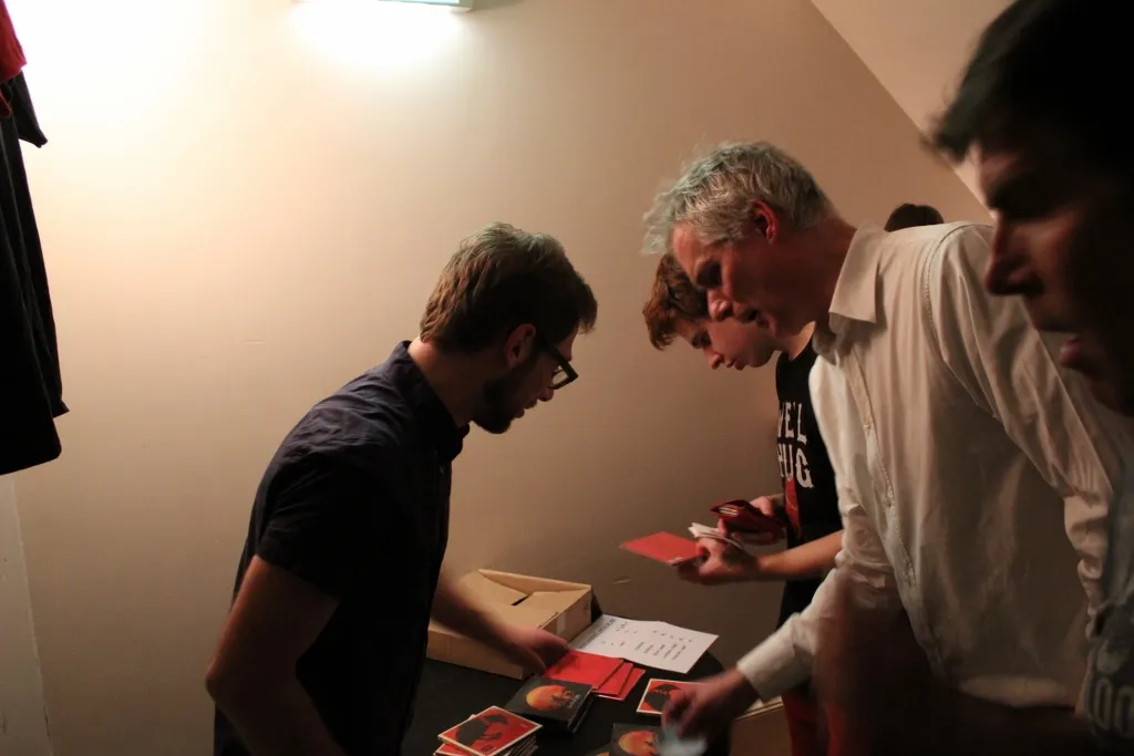 Na afloop begroet het trio trouwe fans en enthousiaste nieuwe aanwas, waaronder twee guitig lachende kids. Manager René Beerens doet erg goede zaken met de merchandise. Vooral de plaat die net uit is gaat hard, op vinyl.