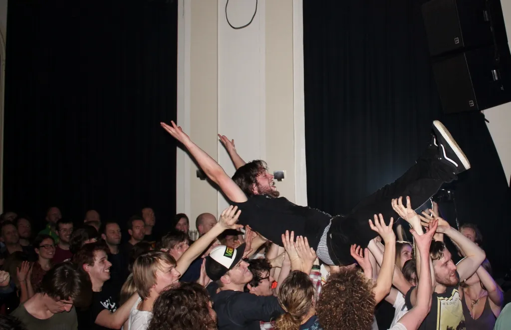 En als t publiek dan om meer smeekt, ja schreeuwt en Paradiso dan ondanks het uitlopen ook de beroerdste niet is; dan afromen met oudje Make It Happen, in 2010 al op de Hollandse Nieuwe en nog steeds één van de beste nummers op de setlist. In dermate langgerekte uitvoering is de track weer goed voor een euforisch slot met drie crowdsurfers en een continue pit.