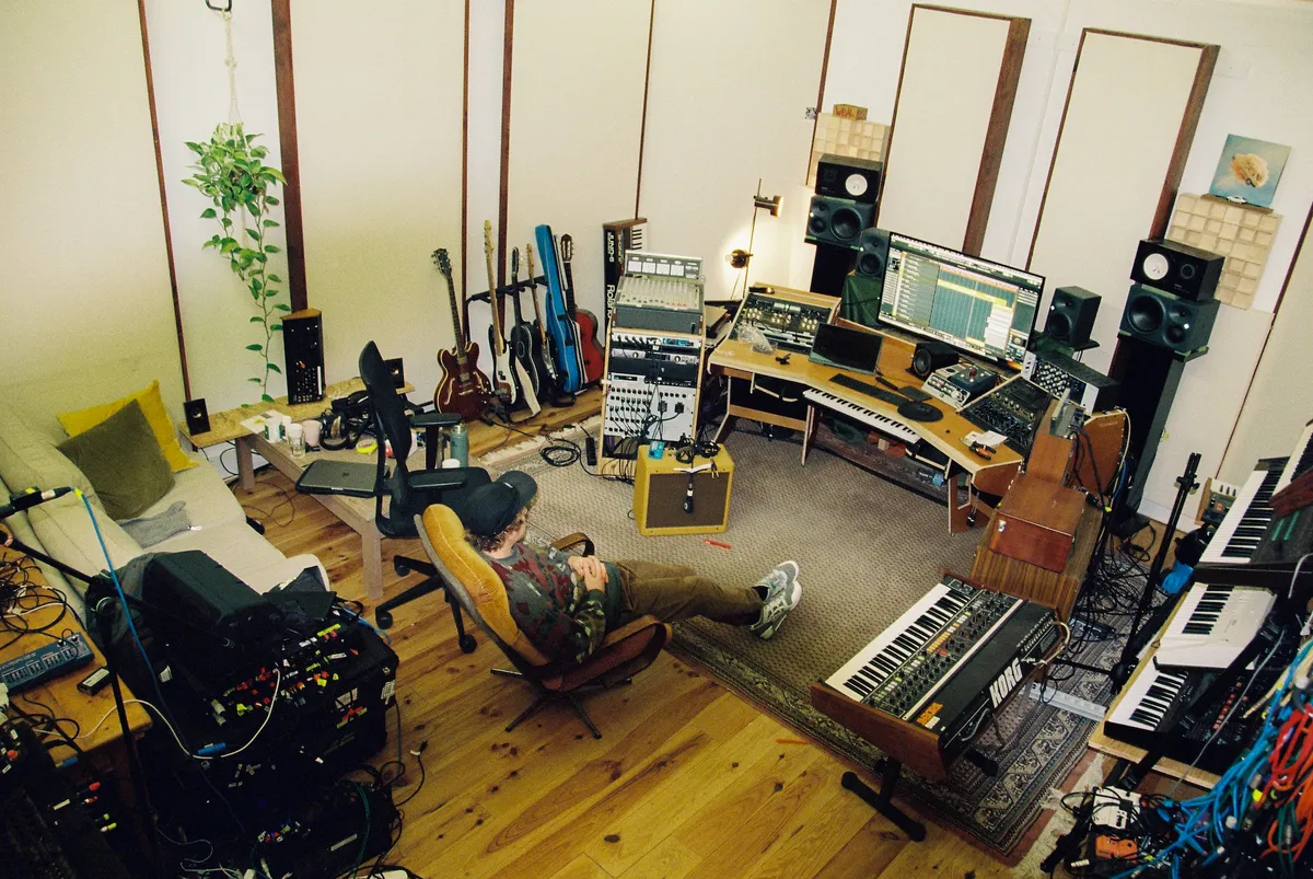 Merijn: ‘We zaten best oké in Amsterdam-Noord, maar hadden last van de buren en geen goed geïsoleerde ruimte. Ik vertelde iemand dat het me zo vet leek om over tien jaar een eigen studio te hebben met daglicht, goede akoestiek en dan ook nog met vrienden in hetzelfde gebouw, zodat je elkaar muziek kunt laten horen. Een week later stonden we hier, in een gloednieuw studiocomplex dat net geopend werd. Het was echt een droom. We hebben drie maanden non-stop zes à zeven dagen per week geklust om het akoestisch helemaal goed te krijgen. Gewoon doorpakken, geen muziek maken.’