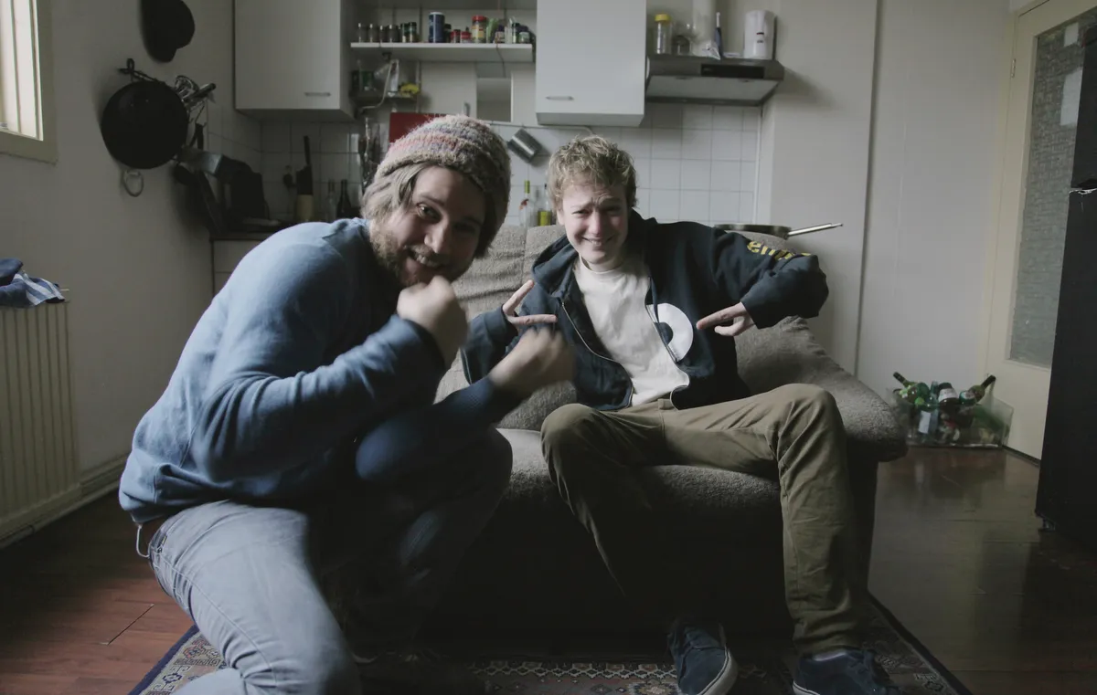 Harm: ‘Ik weet het nog precies. Er was een verjaardag van een gezamenlijke vriendin in Café België in Utrecht. Hij deed filmschool, ik studeerde filmwetenschappen. Ik had zelf net een filmcamera gekocht en begon tegen hem te nerden: “Hoe kan het nou dat Zwartboek er zoveel sicker uitziet dan al die andere Nederlandse films?” Waarop hij reageerde: “Hoe bedoel je? Zwartboek is de kutste film die ik ooit gezien heb.” Hij brandde die film helemaal af. Een week later vroeg een vriend me om een videoclip te maken. Toen dacht ik: ik moet Merijn hebben! Hij kwam bij me langs, we hebben een halfuur over dat concept gepraat en toen knalde hij zijn laptopje open met een muziekproject. Daarna hebben we nooit meer over die videoclip gehad. Ik had nog niet zoveel muziek gemaakt, maar was wel al sinds mijn veertiende veel betaald aan het dj’en. Ik hield van alternatieve, rauwere shit, was groot fan van Moodymann, maar draaide ook gewoon op bruiloften. Daar kun je dus geen house van Moodymann laten horen. Ik kreeg zóveel stress in mijn lichaam van platen draaien die ik zelf niet vet vond. “Waka Waka” van Shakira, best een goede track, maar na een tijdje werd ik er kotsmisselijk van. Toch draaide ik hem, wanneer ik dacht dat het publiek het nodig had. Nou, soms blijkt het publiek er dan hetzelfde over te denken als jij en dan gaat iedereen zo van: “What the fuck, waarom draait hij die plaat?” Kutste gevoel ter wereld.’