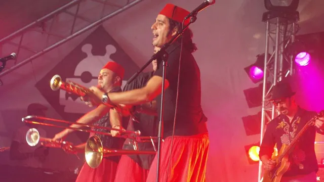 Het achtkoppige gezelschap uit Italië weet het publiek te entertainen met een patchwork aan stijlen; van klezmer tot bellydance, rap en cumbia.