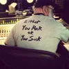 “Inderdaad, wat zijn dat fucking rare mensen aan het worden. Toch? En alle mensen die dat kijken? Iedereen is zichzelf aan het portretteren op een bepaalde manier, de wereld aan het voorliegen. Er zijn twee opties voor de toekomst: óf iedereen wordt er heel goed in, of we gaan er met z’n allen doorheen prikken. Niet dat ik er een oordeel over heb, ik weet ook niet wat goed of slecht is. Ik probeer het alleen te observeren.”