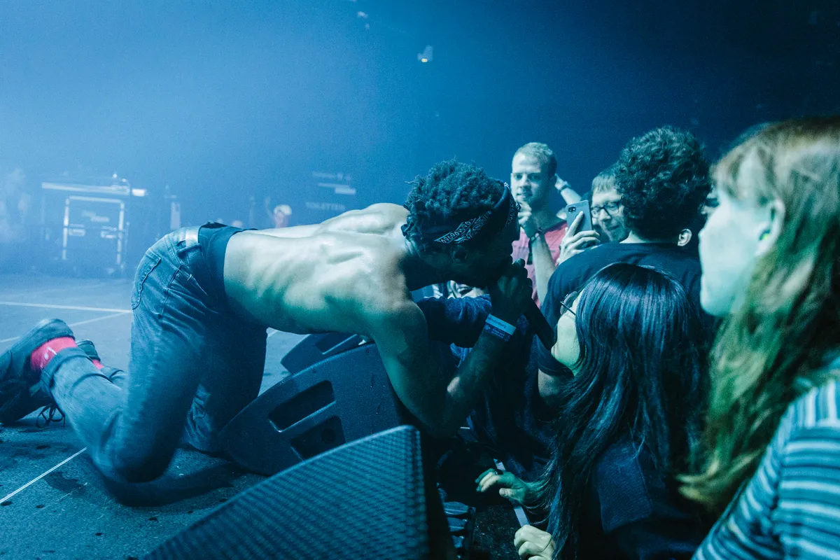 ‘Ik ben nog nooit zo stoned geweest’, bekent JPEGMAFIA wanneer hij het podium op hobbelt. ‘Ik ben bang dat ik dadelijk moet kosten, zoveel water heb ik gedronken.’ De rapper uit Baltimore lijkt niet te overdrijven, zijn ogen hangen op half zeven, zijn gezicht is geel en hij ziet er al met al best belabberd uit. Maar niets om je zorgen over te maken: al bij het eerste nummer duikt hij de kolkende moshpit in, even later staat hij de longen uit zijn zweterige lijf te krijsen en tussendoor rapt hij vlijmscherp over glitchy beats heen. Een beetje in de hoek van Denzel Curry en H09909, eigenlijk. Grappig om te zien hoeveel jonge kids vooraan gek gaan, zijn tracks woord voor woord kunnen meebrullen en zelfs de deze week verschenen track ‘Puff Daddy’ uit het hoofd kennen. Grootste turn-up van het weekend!