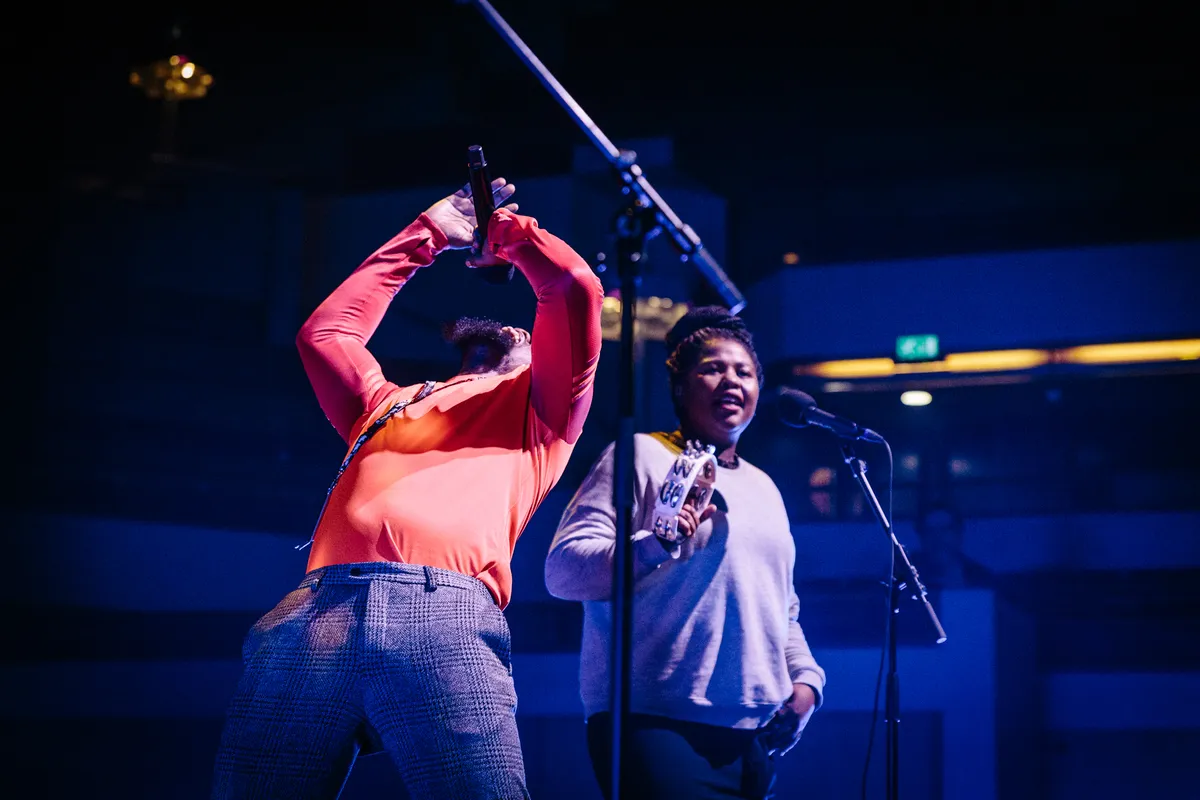 Met iedere uithaal prikt hij gaatjes in je schild, met elke ad-lib boort hij dieper je hart in en met elk verhaaltje komt Serpentwithfeet harder binnen. Zijn show op Le Guess Who is waanzinnig mooi. De artiest uit Brooklyn ziet er uit als de grootste R&B-superster, stijlvol in het rood gestoken en met glinsterende gouden sierraden. Hij heeft een bijpassende stem, met een gigantisch bereik en telkens weer zangerig de hoogte in schietend. Zijn muziek zit vol contrasten: de helft van zijn nummers speelt hij solo achter de piano, de andere helft laat hij de experimentele elektronische gospel horen zoals die op zijn debuutalbum Soil te horen zijn – gemaakt met hulp van producers als Clam’s Casino. Dan weer neuriet hij breekbaar hunkerend naar liefde, dan weer komen zijn teksten kermend naar buiten, in romantische rouw. Zijn nummers zijn bijna conversationeel, alsof hij zich rechtstreeks tot de vele natte oogjes in het publiek richt en de dialoog wil aangaan. Zelfs het gekeuvel tussendoor zingt hij, met korte R&B-uithaaltjes. De zaal kijkt ademloos toe, en roept instemmend terug wanneer hij daarom vraagt. ‘Keep a tender heart’, zingt hij, ‘en ik hoop dat ik jullie hart wat zachter heb kunnen maken.’ Yep, zo zacht als pudding.