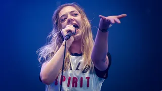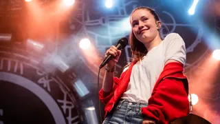 Oei, de 20-jarige Noorse popzangeres Sigrid heeft vandaag zo’n beetje alle interviews afgezegd vanwege stemproblemen. Het belooft niet veel goeds voor haar show op Stage 4, terwijl er best wat vanaf hangt: ze staat precies op het schakelpunt van borrelend talent tot popster-in-wording, werd bekroond tot BBC Sound of 2018 en heeft een drietal gouden singles. Op basis van die status zou je zelfs zeggen: had ze niet gewoon in de tent moeten staan? Hoe dan ook, zo te horen heeft de gemberthee gelukkig zijn werk gedaan. De stembanden zijn soepel, slechts een enkele uithaal klinkt wat hees, en met een dikke glimlach zwiert ze over het podium, een beetje geeky en supercool.