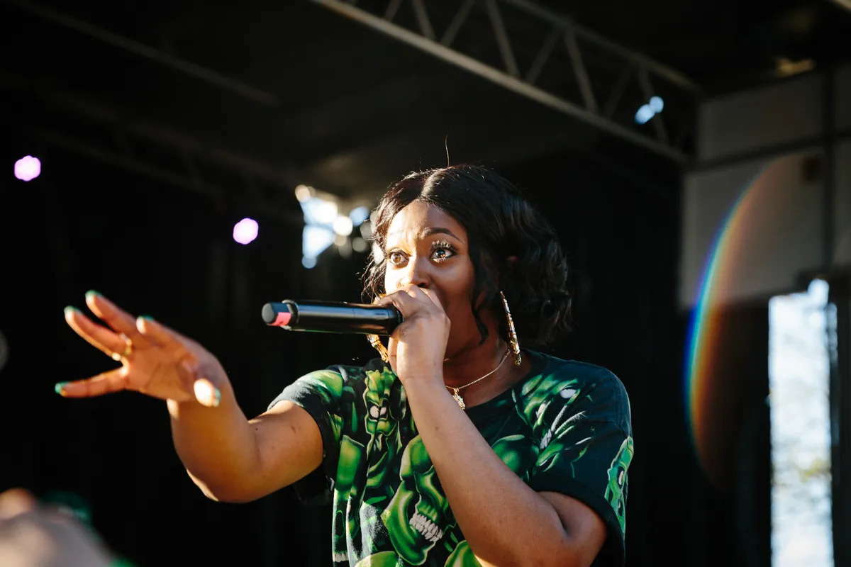 Met haar roze cowboyhoed, snoepketting-jurkje en kleurrijke vriendenkliek ziet ze eruit als een wandelende snoepwinkel, maar rapper Bbymutha moet het meer nog hebben van haar lijzige flow en verrassende dub-reggae-producties.