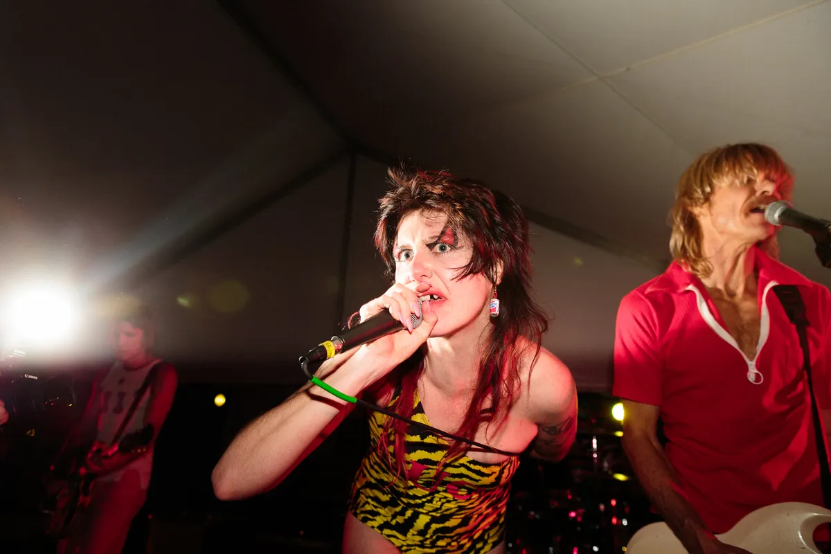 Kijk drie minuten naar Amyl and the Sniffers en je snapt direct waarom Amy Taylor haar halve voortand mist. Ze staat te brullen alsof ze in een hardcore-band zit, maakt snoekduiken over het podium en tracht even later zelfs in een partytent te klimmen, om meteen keihard op haar bek te gaan. Met die ‘I don’t give a fuck’-attitude is de groep uit Melbourne over de afgelopen jaren al uitgegroeid tot een livesensatie, nu staat er ook een album aan te komen dat gegarandeerd nog veel meer blauwe plekken zal opleveren.