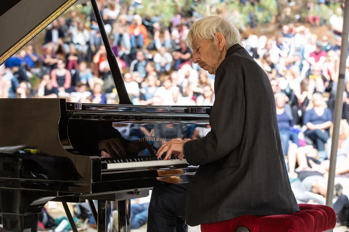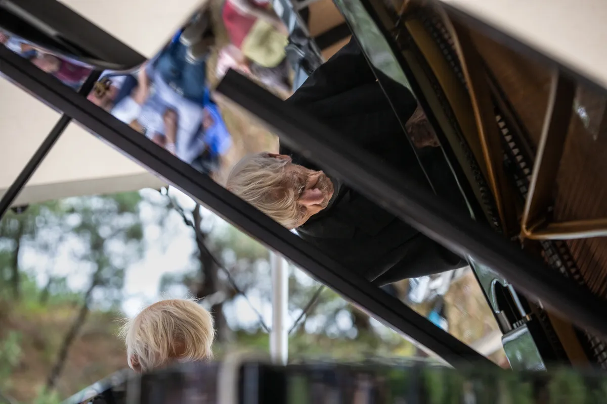 De Vuurboetsduin is zo’n plek. Op je huurfiets nog geen tien minuten verwijderd van het festivalcentrum, maar toch voelt het alsof je nog wegger bent dan je al was. Pianist Reinbert de Leeuw neemt er al vroeg op de vrijdagmiddag het voortouw aan de (neo-)klassieke kant van het programma. De Leeuw vertolkt werken van de Franse componist Erik Satie. Hij kent ze op zijn duimpje: De Leeuw zorgde ervoor dat zelfs je klassiekhatende tante naar Satie ging luisteren. De duin zit bomvol, maar binnen de kortste keren klinken alleen nog krakende takjes en bijna huilende baby’s. Satie schreef er ruim honderd jaar geleden zonder het te weten de perfecte soundtrack voor, De Leeuw brengt hem nu op bijzondere wijze terug tot leven. Wie luistert naar wat De Leeuw speelt en vooral naar wat hij niet speelt, begrijpt meteen een van de redenen waarom het thema van Into The Great Wide Open dit jaar ‘vrije ruimte’ luidt. Alles ademt.