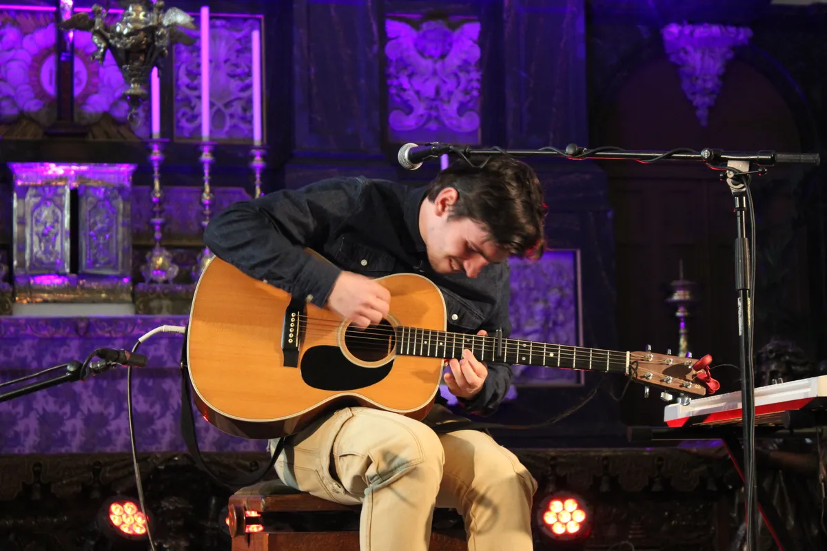 De Britse singer-songwriter Samuel Ford speelt vanavond de eerste show in de Paradijskerk. Ford doet zijn zingende preek in een bomvolle zaal, waar menig pastor vandaag de dag jaloers van wordt. Een prachtige omgeving, waar hij zijn intense ballads zonder moeite tot zijn recht laat komen. Veel muziek bracht hij ook niet uit, dus de set bestaat voornamelijk uit nieuw werk van zijn EP die in mei van dit jaar uitkomt. Bij opkomst valt er een doodse stilte en Ford pakt wat voorzichtig zijn gitaar ter handen. Maar vanaf het moment dat hij deze bespeelt, verdwijnt die onwennigheid direct. Ford houdt van lange uithalen. Die beginnen laag en zacht en glijden langzaam toe naar een bombastisch schel stemgeluid dat binnenkomt als een mokerslag. Opvallend is ook hoe deze jonge muzikant zijn gitaar weet om te toveren tot ritmische bak vol interessante geluidjes en resonerende tonen.Naast tokkelen en aanslaan, draait Ford zijn gitaar liever een kwartslag en legt hem op zijn schoot tijdens het nummer Lately. Drummen, tokkelen en de tonen flink laten rondgalmen door het gigantische middenschip van de kerk. Dat in combinatie met de vocalen van Ford maakt het een adembenemende ervaring. (Flip Kloet)