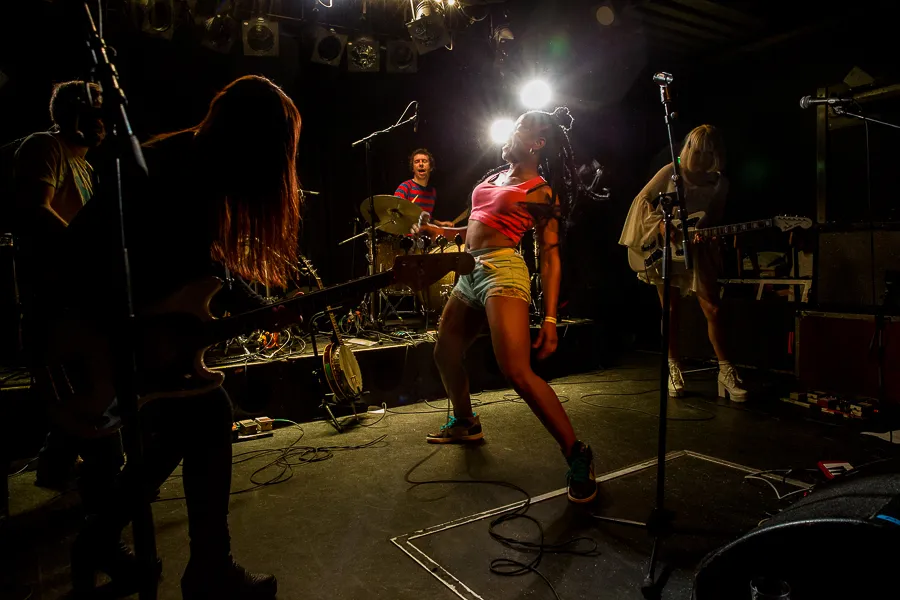 Meestal heeft zelfs de vrolijkste indierock die je kent nog een laagje droefenis. Trompetgeschal of koortjes, het blijft toch altijd: let’s dance to Joy Division. Niks mee te maken, dacht The Go! Team. Vanaf het begin wordt het een afgeladen Rotown duidelijk dat het dak er af mag. Met een swagger die je normaal alleen in hiphop vindt is het een genot om naar te kijken. Frontvrouw Ninja brengt veel energie met zich mee en roept door haar Britse accent op een goede manier zelfs associaties met de Spice Girls op. De rest van deze zeskoppige formatie laat zich tijdens het optreden ook niet onbetuigd. Vele instrumentwisselingen maken het een dynamisch geheel. Halverwege staan ze een nummer te spelen wat - echt waar - gedragen wordt door twee blokfluiten. Aan het eind van de set heeft The Go! Team wat moeite om de energie vast te houden en vinden sommige bezoekers het hoog tijd om verder te kijken. Wat uiteindelijk blijft hangen is het plezier dat de band in hun muziek en hun performance uitstraalt. Het is een grote glimlach waard. (Mick Arnoldus)