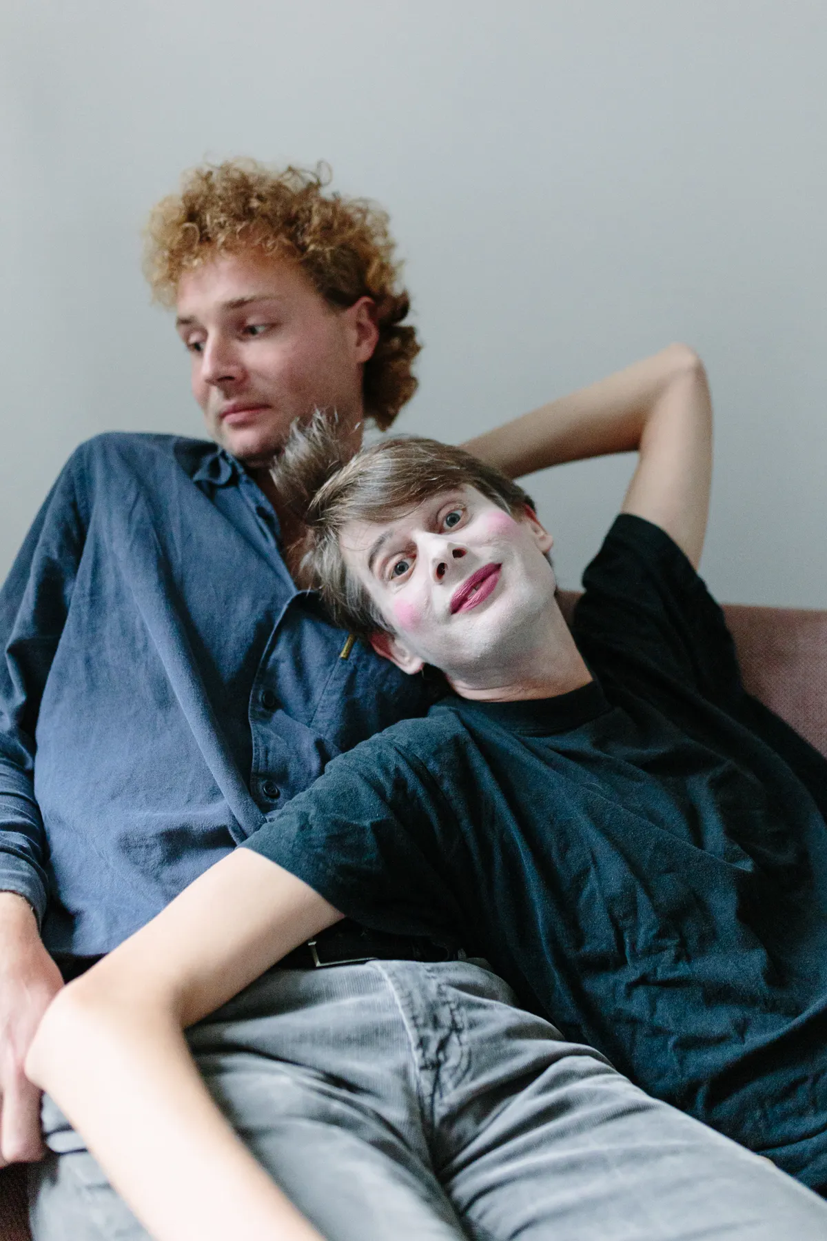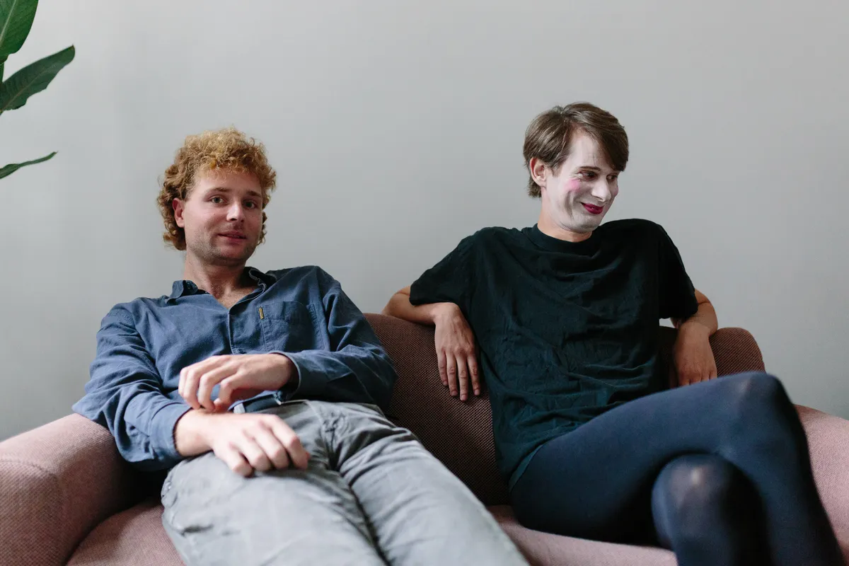 Goeie kans dat je in eerste instantie nogal moet lachen als je het duo De Witte Kunst zo hoort praten in het huisje van Koen in Amsterdam-West. Ook als je ze ziet optreden, trouwens. Absurdisme viert immers hoogtij wanneer die twee op het podium staan. Zanger Koen haalt heel wat kapriolen uit on stage, terwijl onemanband Lyckle 80s synthesizer-deuntjes uit zijn keyboard tovert. De liedjes van hun debuut-EP – vandaag verschenen op Magnetron, het label van o.a. Fatima Yamaha en De Jeugd van Tegenwoordig – doen al even kolderiek aan als een Bassie en Adriaan-aflevering. Het is schaamteloos raar, ongemakkelijk, ontregelend. En verdomd catchy, ook dat nog!