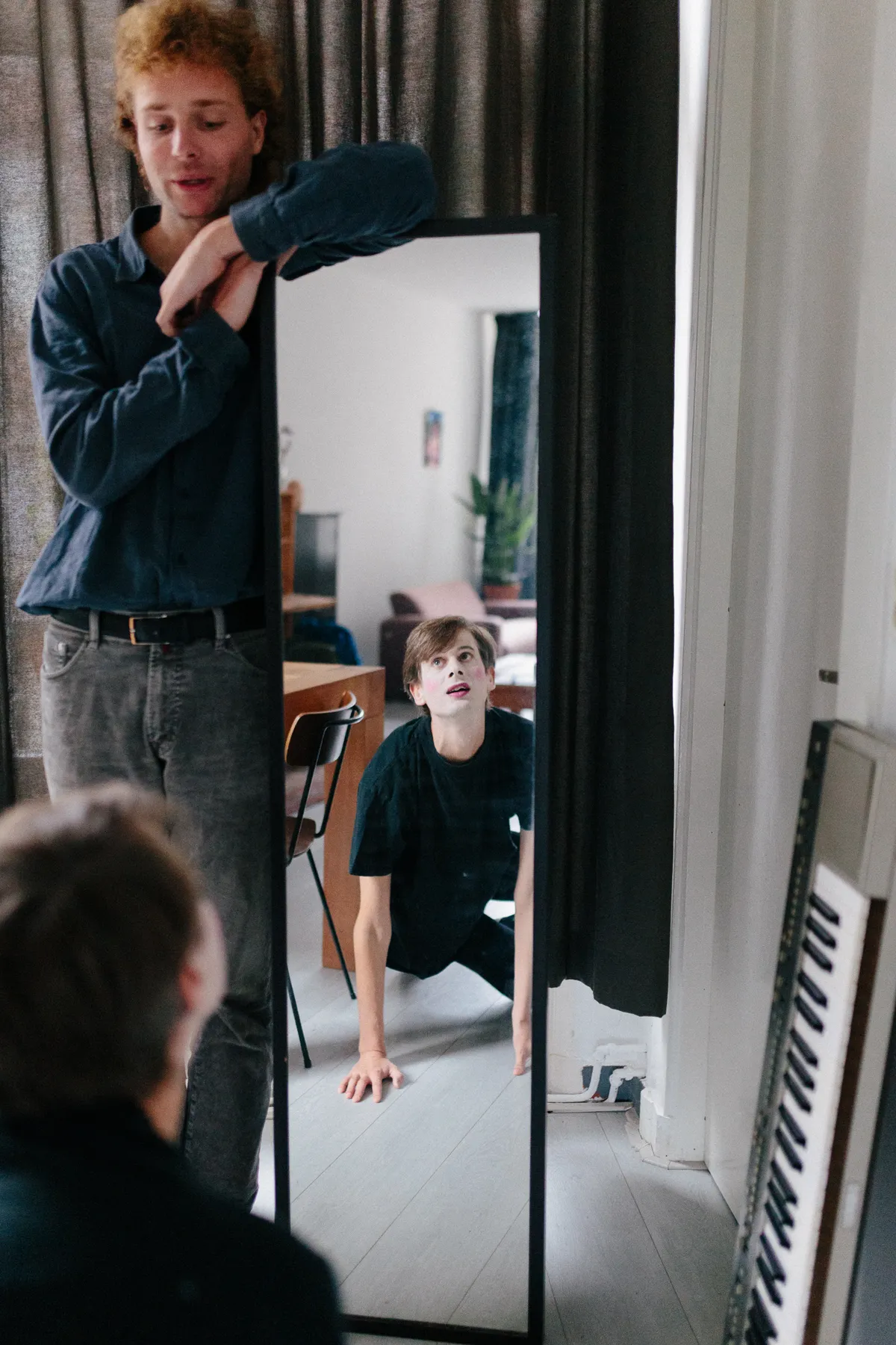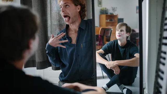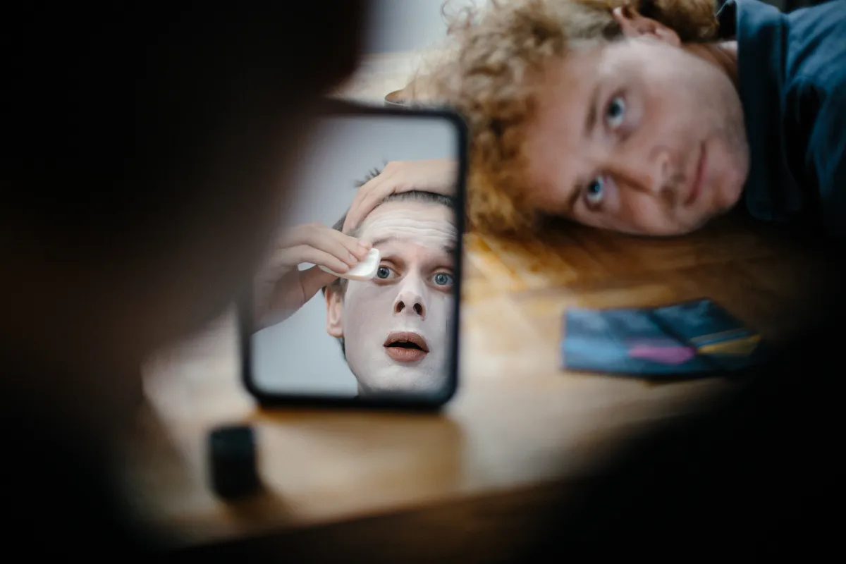 En nu? Nu is Koen zich steeds vaker gaan schminken voor shows: een wit gezichtje, een blosje op de wangen en wat lippenstift, een beetje zoals een pantomime-speler. ‘Dan maak je wel duidelijk: ik ben een soort toneelspeler, ik speel een personage. En ik vind het simpelweg leuk om mezelf op te maken en verkleden.’