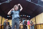 Flip Noorman en zijn band zijn perfectionisten. Een beetje meer monitor hier, een beetje minder daar. Het duurt allemaal wat lang. Toch lijkt het publiek dat prima te vinden, gezien het aantal mensen dat, al dan niet toevallig, is komen kijken naar de afsluiter op Plaza Mozaïque. Noorman werd bekend als singer-songwriter, maar heeft ondertussen een complete band om zich heen verzameld. Zijn laatste album 'Make-up' is een ode aan de leugen. Noorman blinkt uit in het schrijven van poëtische teksten vol ingenieuze woordspelingen, die tijdens de show worden voorgedragen. Tussendoor gebiedt hij tierend zijn publiek mee te doen met een gezamenlijk orgasme, wat neerkomt op samen kreunen op de maat van de muziek. De show voelt zo nog wat onwennig, maar met het laatste nummer overtuigt hij het aanwezige publiek. (Flip Kloet)