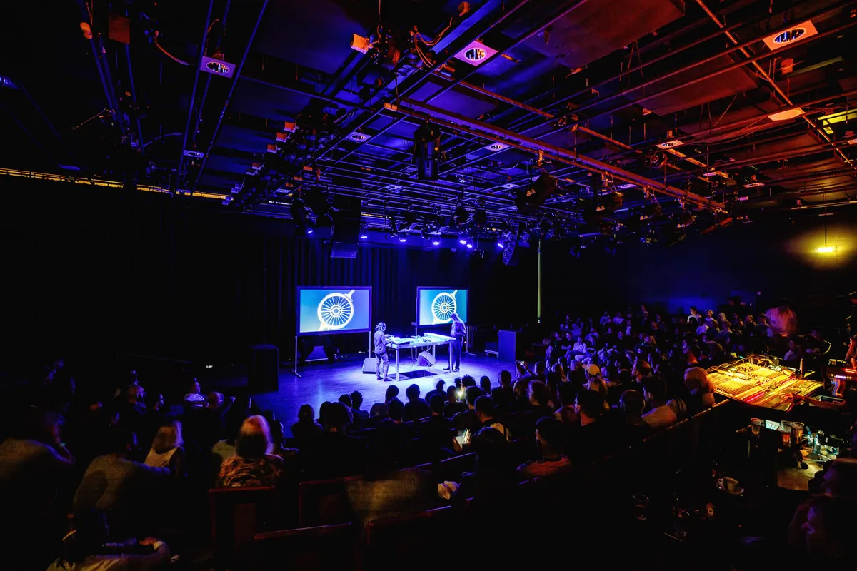 Tarik Barri, Nederlander-in-Berlijn die veel met Thom Yorke samenwerkte, presenteert op Dekmantel voor het eerst niet alleen visueel werk, maar ook zijn eigen muziek. Hij schreef een eigen computerprogramma – Versum, heet ’t – waarmee hij een groot universum creëerde. Op het bioscoopscherm zie je hoe hij erdoorheen vliegt, en telkens wanneer hij bij objecten in de buurt komt, hóór je die objecten ook. Zijn eerste compositie is bedwelmend en overrompelend, de tweede begint wat flauw met een zangeres die haar stem en klankschaal (!) live samplet. Tarik plaatst haar hoofd telkens in het universumpje, en vervormt beeld en geluid steeds onherkenbaarder. Dan wordt het gelukkig alsnog heel cool. Deze show voelt vooral als een eerste demonstratie van het gigantische potentieel van zijn werk. Superbenieuwd naar meer.