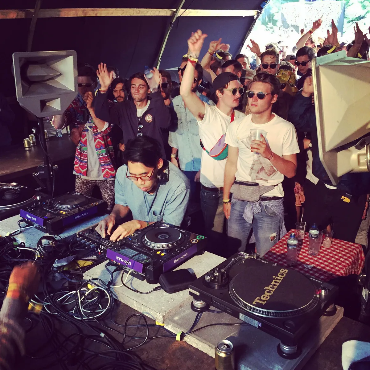 Het waren verder vooral de Nederlanders die misgrepen bij de tickets, zo lijkt het. Er zijn echt overweldigend veel Fransen, Duitsers, Engelsen, Spanjaarden, Amerikanen, zelfs een groep Japanners. Hoeveel buitenlanders er precies zijn wil Thomas Martojo van Dekmantel niet zeggen, wel dat het er meer zijn dan de 50% van vorig jaar. Het lijkt wel op zijn minst 75%. Moet je daar nu blij mee zijn? Moeilijk te zeggen. Aan de ene kant zie je super ‘dedicated’ publiek, superhippe Aziaten of Italianen bijvoorbeeld, die precies weten waar ze zijn. Zij zijn het die San Proper al om drie uur op de tafel hebben staan, terwijl hij met een plaat onder zijn arm op zijn Rush Hour tattoo staat te wijzen. “This record is so nice, I’m gonna play it twice!” Je hebt ook de vele Engelsen die het festival een ordinair randje geven door nog voor de avond valt met tollende ogen over het veld te zwalken. Een ding is zeker: ze komen hier niet om de kat uit de boom te kijken.