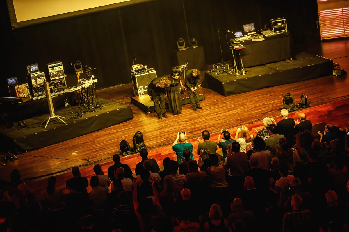 Het contrast met een dag eerder kan bijna niet groter zijn. Bij zowel Four Tet als Tangerine Dream staat dezelfde zaal nokvol. Of staat - zit, eigenlijk, wanneer bij Tangerine Dream de stoelen weer opgebouwd zijn. Op papier was het een gedroomde boeking, de Berlijnse synthpioniers uit de jaren zeventig. Zelfs ook nu er nog maar een bandlid in zit dat met wijlen oprichter Edgar Froese heeft gespeeld. Maar het wordt een show met vooral dieptepunten. Een enkel moment kan je je voorstellen hoe extreem futuristisch de synthprog bijna vijftig jaar terug geklonken moet hebben. Maar nu krijg je vooral wegtrekkers als ze het moderniseren met lompe kicks, een sloot aan kitsch en richtingloze gitaarsolo’s uit een keyboard. En dan hebben we het nog niet eens over de grootste wegtrekker, als door de visuals van wolkenpartijen foto’s van Froese in en uit faden. Of die drie kwartier improvisatie die na een uur en drie kwartier ingezet wordt.