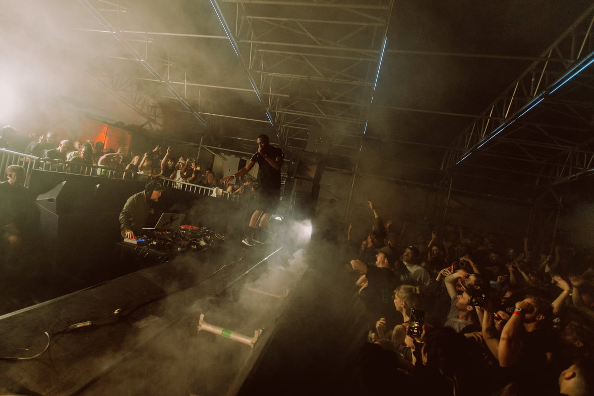 Maar waar dan af te sluiten? Bij de 160 bpm triptechno van Woody92 uit Delft? Bij de Haagse debutant Torus, die met zijn Laser Club een artistieke draai geeft aan trance en eurohouse? Of nee, voel je de grond daar trillen?… Oef, in The Nest lijken wel twee tektonische platen op elkaar te botsen. Kevin Martin alias The Bug is meester van de diepe, diepe, diepe bassen. Al sinds de jaren tachtig maakt hij aardschokkende dub, grime, industrial en pikzwarte dancehall, en vandaag staat hij op de line-up met mc Flowdan uit East-Londen. In 2008 maakten ze samen de onverwoestbare dubstep-classic ‘Skeng’ (die eigenlijk ieder jaar op Dekmantel wel een keertje wordt gedraaid), en Flowdan is de laatste tijd weer helemaal het mannetje dankzij Fred again.. en Skrillex, met wie hij ‘Rumble’ maakte. Al halverwege de set doen ze ‘m in een uitgeklede, meer Bug-waardige variant. Niet eenmaal, maar zelfs twee keer. TWEE KEER. De grootse aardbeving van de dag.