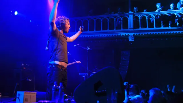 Frontman David Burn van Detroit Social Club is de hele dag al sfeermaker in en om Paradiso. Om half drie vanmiddag stond hij al in zijn vol getatoeërde blote bast op de parkeerplaats te oreren. Hij voert het hoogste woord in het zonnetje, om hem heen zijn band en crew. Ook vanavond op het podium is hij de man, met zijn armen omhoog, zoals Tom Meighan van Kasabian dat ook altijd doet. Een beetje branie kan geen kwaad op deze door folk gedomineerde London Calling. Een klein groepje jongens zet het meteen op een springen.