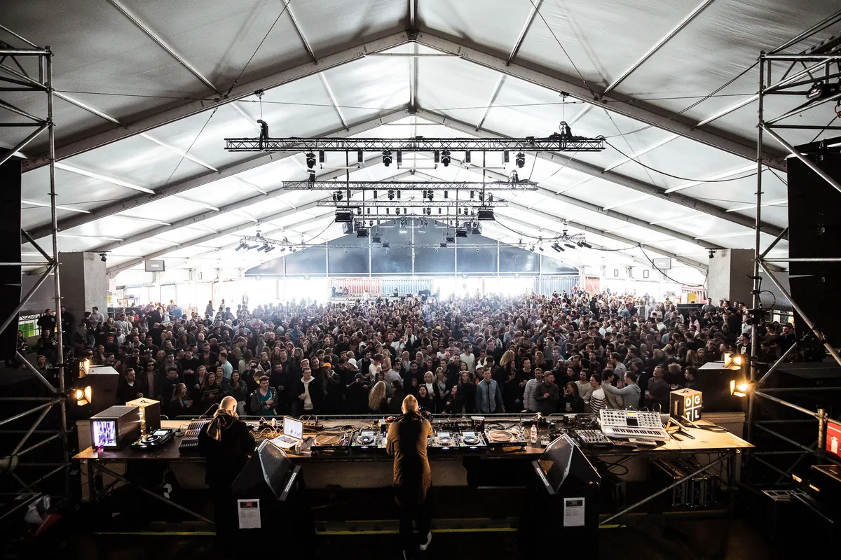 De basis van DGTL is onveranderd. Nog steeds tijdens Pasen, in loodsen en tenten op de NDSM-werf en uiteraard gaat het nog steeds om house en techno. Toch zijn er op deze eerste dag al bepalende veranderingen te zien. Ten eerste de programmering. Hinkte de organisatie vorig jaar nog op twee gedachten door heel duidelijk een hoop spannende, wat meer ‘underground’ acts naast de grote namen te zetten, dit jaar wordt de focus meer gelegd op gevestigde namen en wat meer mainstream dance. Niet dat de spannende namen wegblijven, maar ze worden wel wat beter omgeven door dj's die toegankelijker draaien. Slim, als je je de lege zalen van vorig jaar nog herinnert. Door het programma zo te stroomlijnen, sluit het stukken beter aan bij het publiek.