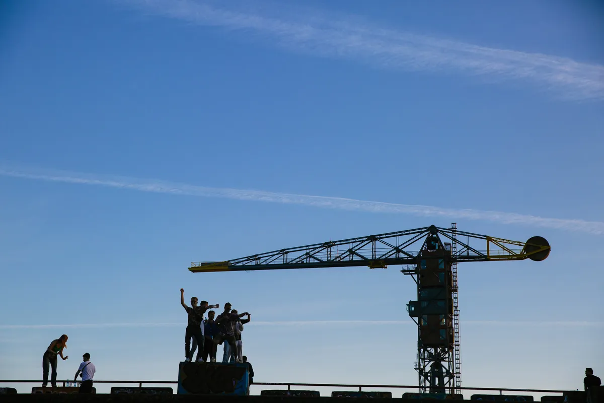 Hey, kijk daar! Waar? Daar, een plekje! Verhip, let’s go. Je ziet ze gaan, hele slingers aan vriendengroepen – hand in hand geknoopt – op expeditie om de laatste vrije vierkante meter dansvloer te vullen. Gaat er een jongen bier halen voor al z’n vrienden? Dan wordt er meteen een portie landjepik gespeeld. Sorry man, opgestaan is plaats vergaan. En kijk daar. Mazzelaar, die ene guy die tijdig op een betonblok net naast de tent is geklommen en nu met z’n armen staat te wapperen alsof hij verwacht dat zijn tenen ieder moment de grond zullen loslaten. Dat betonblok, dat is ZIJN betonblok.