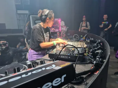 Mensen zijn ook vol op doortocht naar die andere hal binnen de grote loods: het Generator podium. Het hardste podium van DGTL wordt vandaag geregeerd door dames. Eerst SPFDJ, en dan de Amsterdamse queen, Ki/Ki. Wat een slayer is zij toch, maar altijd met gevoel. Ki/Ki houdt van hard en snel, maar ook van trance-melodieën en ademmomentjes. Ideaal voor zo laat op een festivaldag. Het is een glorieus moment voor haar, en mooi om nog maar eens bevestigd te zien hoe snel zij uitgegroeid is tot een absolute publieksfavoriet. Ook hier is het vrijwel onmogelijk dicht bij de booth te komen, maar Ki/Ki’s uitstraling reikt wel tot een meter of vijftig. Echt opvallend hoe natuurlijk DGTL erin geslaagd is in een paar jaar tijd een omslag te maken in de man-vrouw-verhouding op de podia. Op vrijwel elk moment van de dag zijn er vrouwelijke of non-binaire artiesten te zijn op plekken die er toe doen.