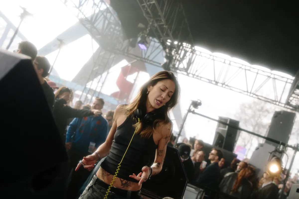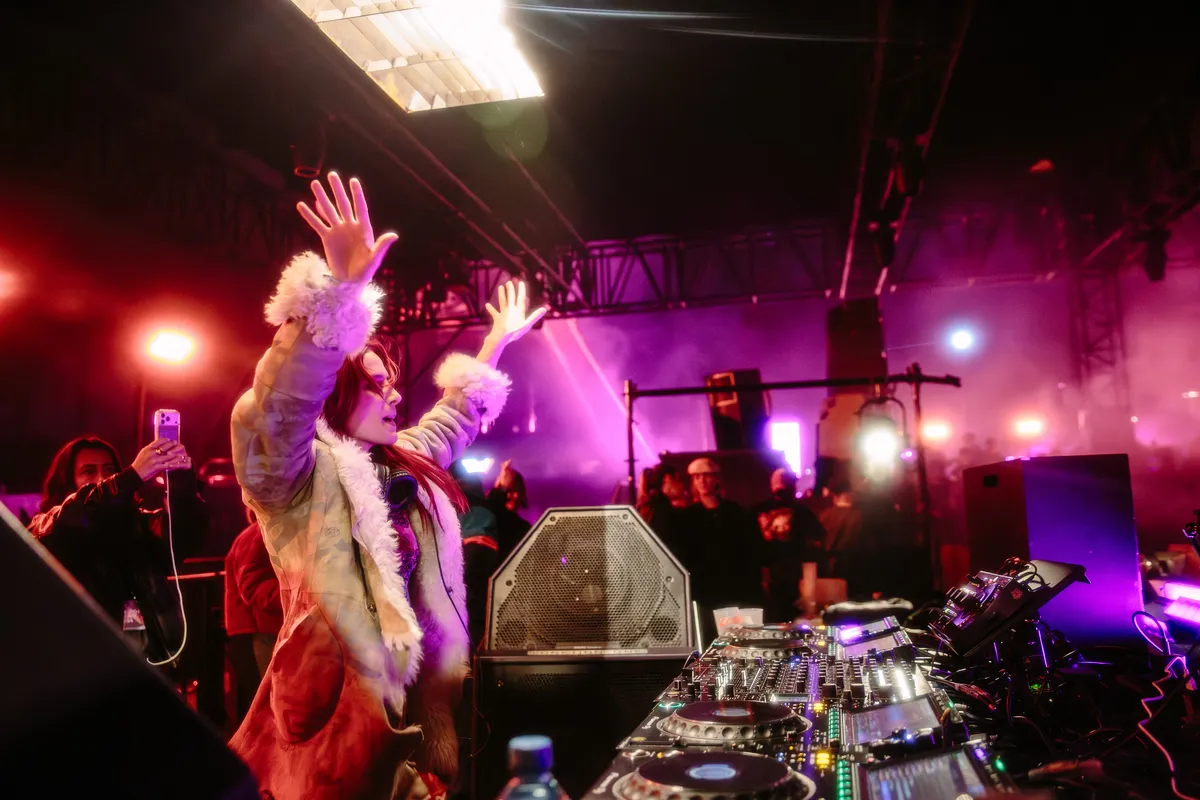Veel drukker is het natuurlijk bij de Generator-stage, waar (hard)techno wordt gedraaid door types die openhartchirurgie zouden verrichten met een kettingzaag. Lekker subtiel dus. Hier staat ook het meest herkenbare publiek: jongens met neonkleurige croptops, meiden met zwarte bikini’s en waaiers, veel leer, blitse zonnebrilletjes, armen, benen en halzen vol Cybersigilism-tatoeages. Afsluiter is de gemaskerde beukkoning I Hate Models, daarvoor draait de Belgische hype NOVAH (1,8 miljoen volgers op Instagram), eerder op de dag hoor je ook gerust Kernkraft 400 door de loods schallen, maar de ontdekking is ÜBERKIKZ, een frêle Italiaanse die vaak een beetje tussen wal en schip valt: door het hoge BPM waarop ze het liefst draait zul je haar eerder op Rotterdam Rave dan in de Berghain zien, maar ze draait toch ook te groovy voor de hardtechnowereld. Met drie faders open stapelt ze lange, loopy platen waarmee ze spanning creëert door vingervlug weg te trekken en verder te schakelen.