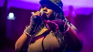 Hatsa, Lambrini Girls heeft de zaal binnen één liedje op de knieën. Nee, dit is geen slap effectbejag: dit is de meest inhoudelijke sitdown die ESNS ooit heeft gezien. Dus kijkt frontvrouw Phoebe Lunny, sloopkogel extraordinaire in onderbroekje en gescheurde panty, de mensen om haar heen, een voor een, recht in het gezicht. Diep in de ogen, om haar boodschap nog wat meer te laten landen. Het is nogal wat: de opkomst van extreemrechts. Lad culture. Creeps die je nafluiten op straat. TERFS. Grote Onderwerpen dus, die het trio uit Brighton aansnijdt in hun puntige drie-akkoorden-punkliedjes met bas, drums en gitaar, gebracht met zoveel overtuiging dat alle grijze mannen binnen de kortste keren Lunny’s leuzen meeschreeuwen. ‘SHUT YOUR FUCKING MOUTH, STUPID FUCKING TERFS!’
